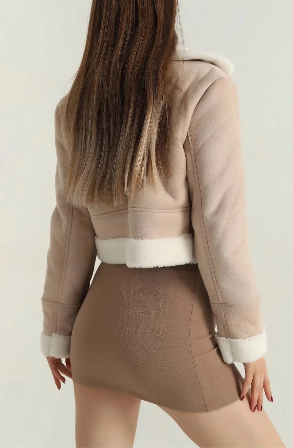 Ürün Adı: İçi Kürklü Dışı Süet Kısa Kaban Krem T1186