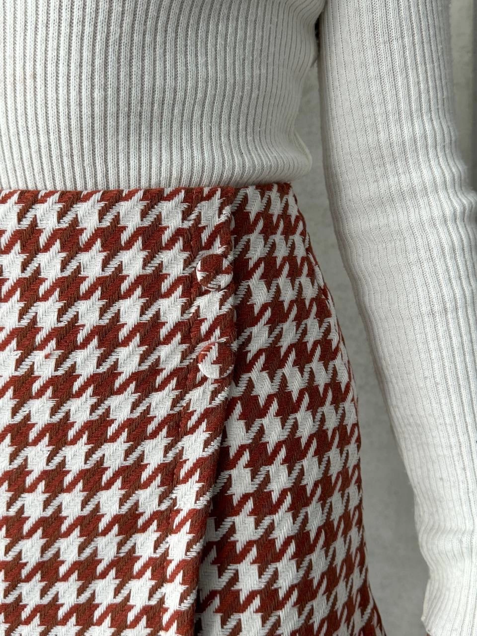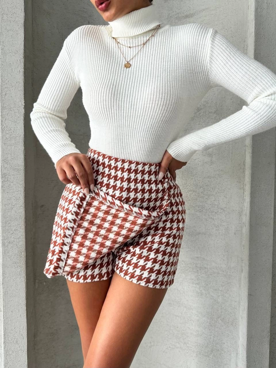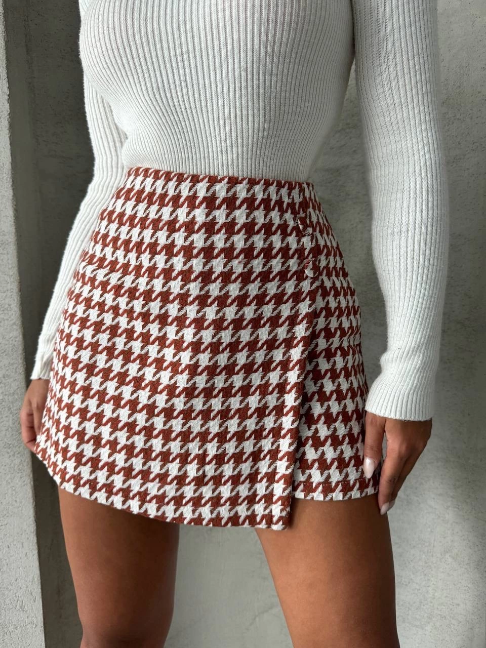 İki düğmeli kaz ayağı desen ch kumaş şort etek bordobeyaz h26414 (Beden: XL)