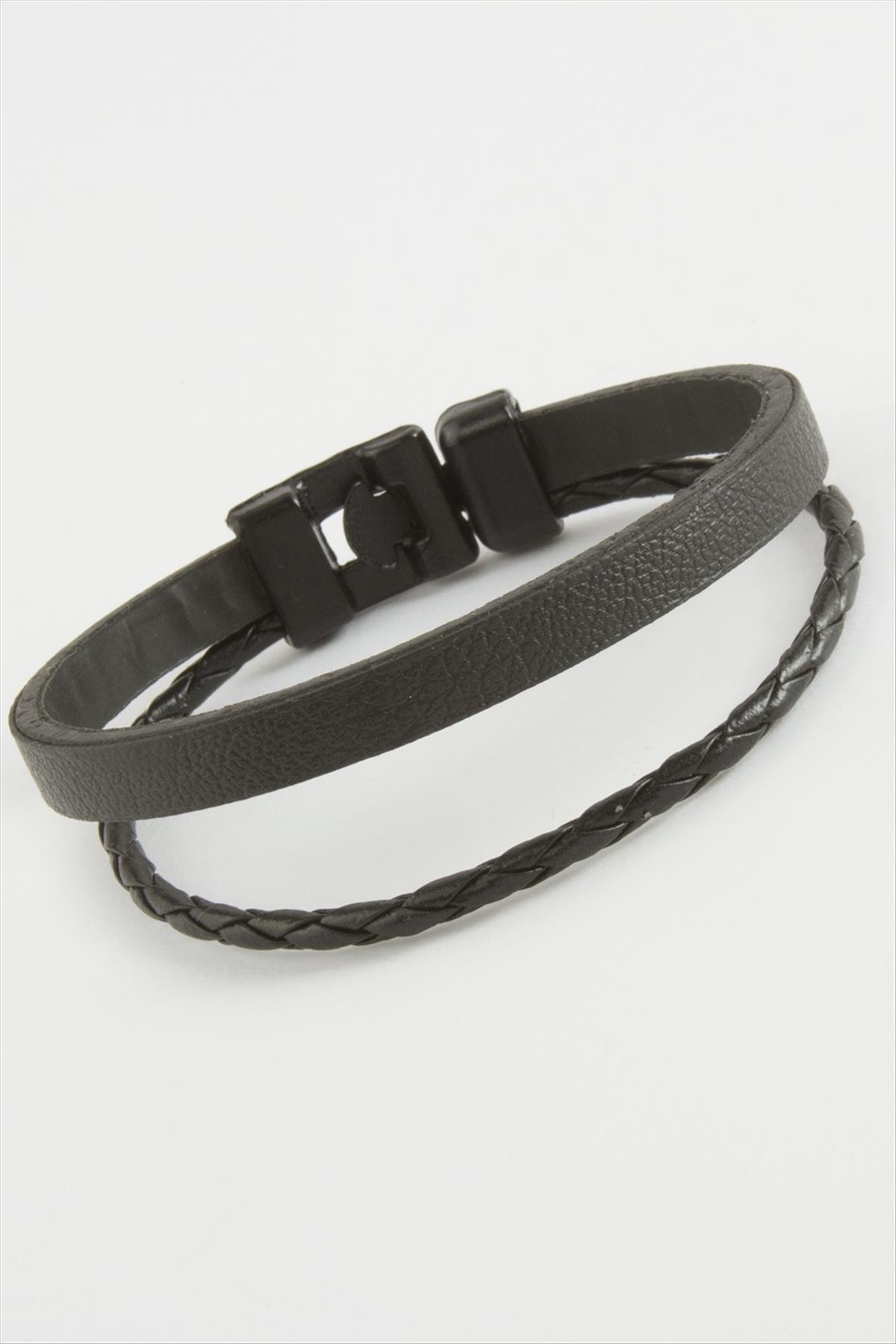 İkili Kaliteli Suni Deri Bileklik-Siyah