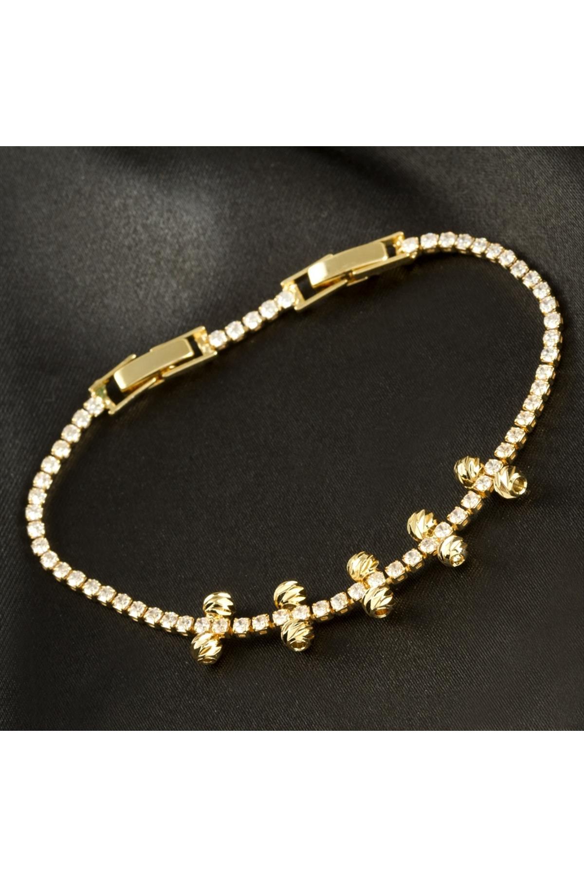 İnce Yuvarlak Tamtur Zirkon Taşlı Lüks Kararmaz Bileklik-Sarı