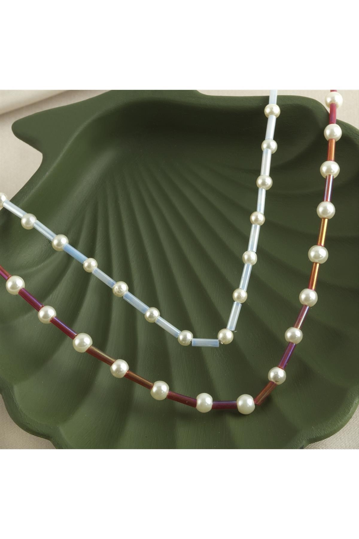 Kolye; Ürün malzemesi inci ve boncuktur. Ürün boyu 45 cm dir. Kartıyla beraber gönderilecektir.