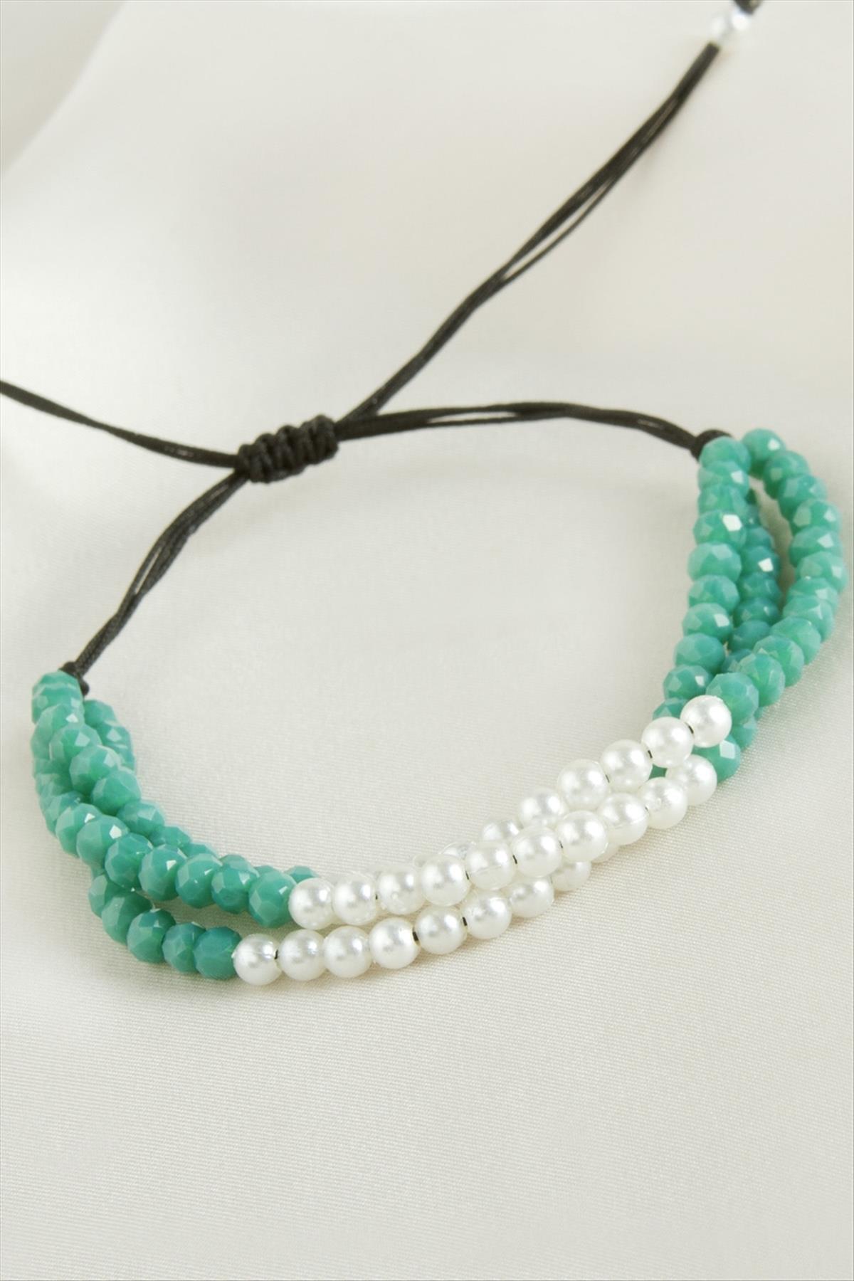 İncili Üçlü Kristal Bileklik-Turkuaz