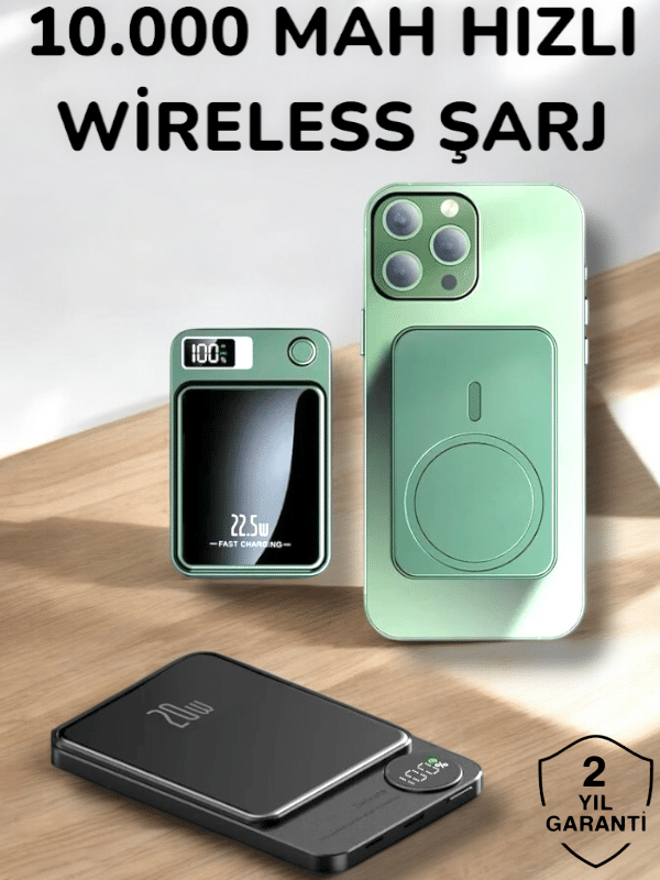 iOS Uyumlu 22.5W Hızlı Şarj Magsafe Powerbank Dijital Göstergeli 10.000 mAh