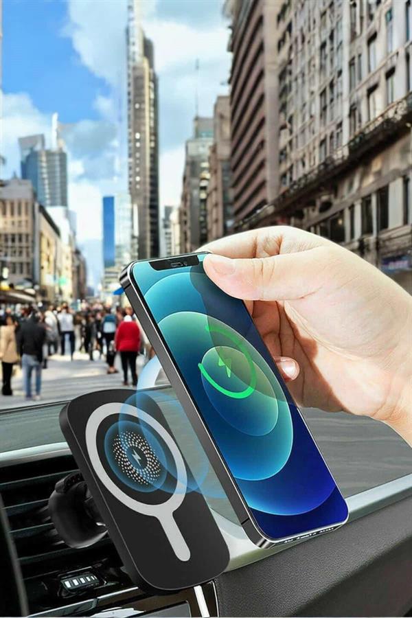 MagSafe uyumlu araç telefon tutucu, iPhone 12, 13 ve 14 Uyumlu serilerinin yanı sıra MagSafe kılıfı kullanan cihazlarla da kusursuz uyum sağlar. Manyetik yüzeyi sayesinde cihazınızı sadece tutucu üzerine bırakmanız yeterlidir. Kablosuz şarj teknolojisi ile 15W hızlı şarj imkanı sunarak telefonunuzu güvenli ve hızlı bir şekilde şarj eder. Akıllı çipi, şarj sürecini optimize ederek aşırı voltaj, aşırı akım ve kısa devre gibi sorunlara karşı tam koruma sağlar.