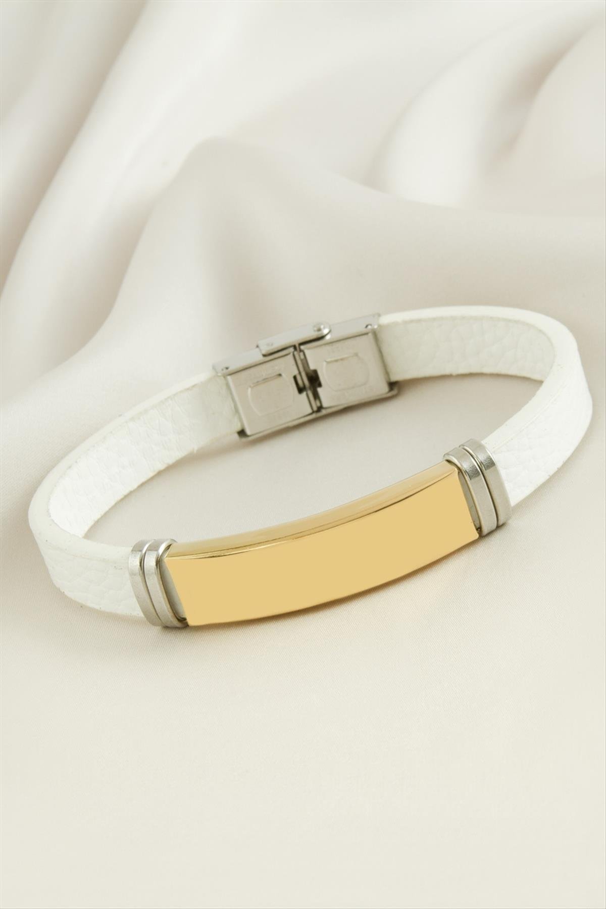 İsim Yazılabilir Deri Çelik Bileklik-Sarı