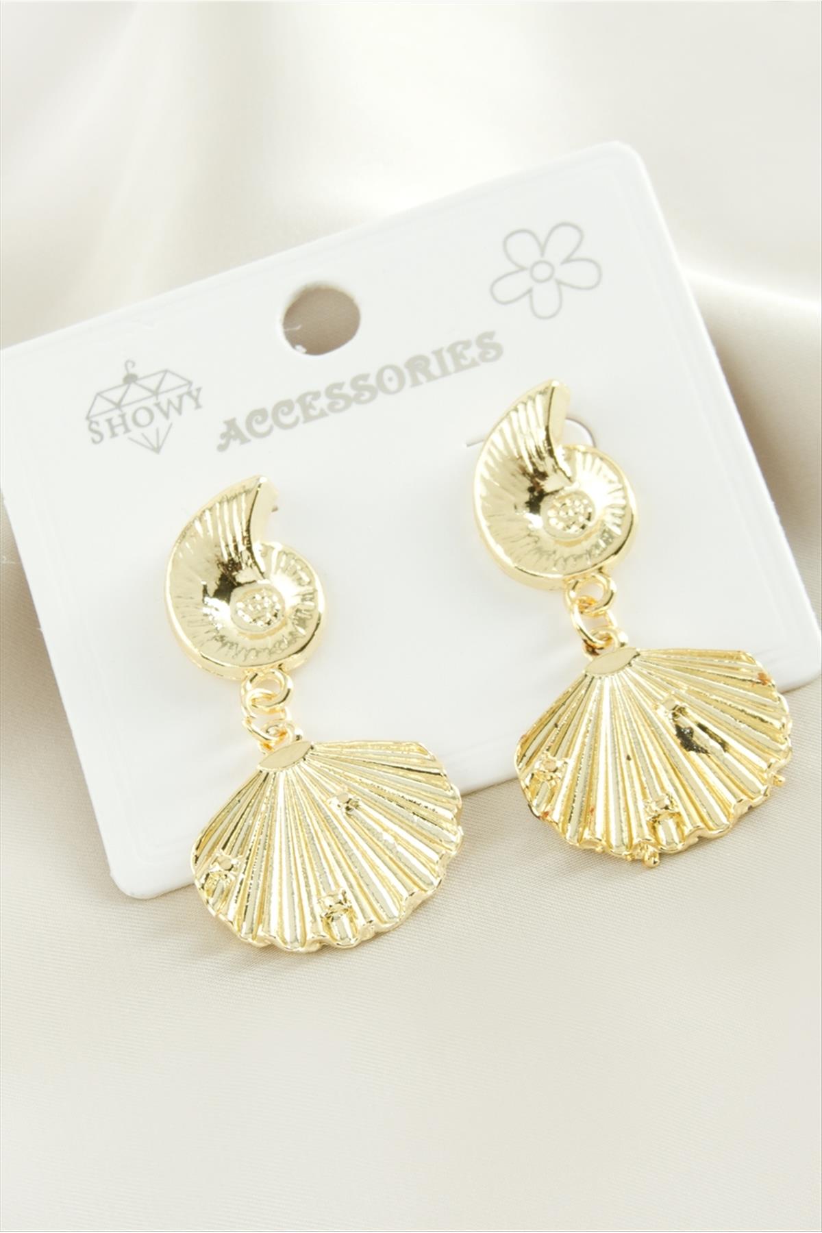 İstiridye Metal Küpe-Sarı