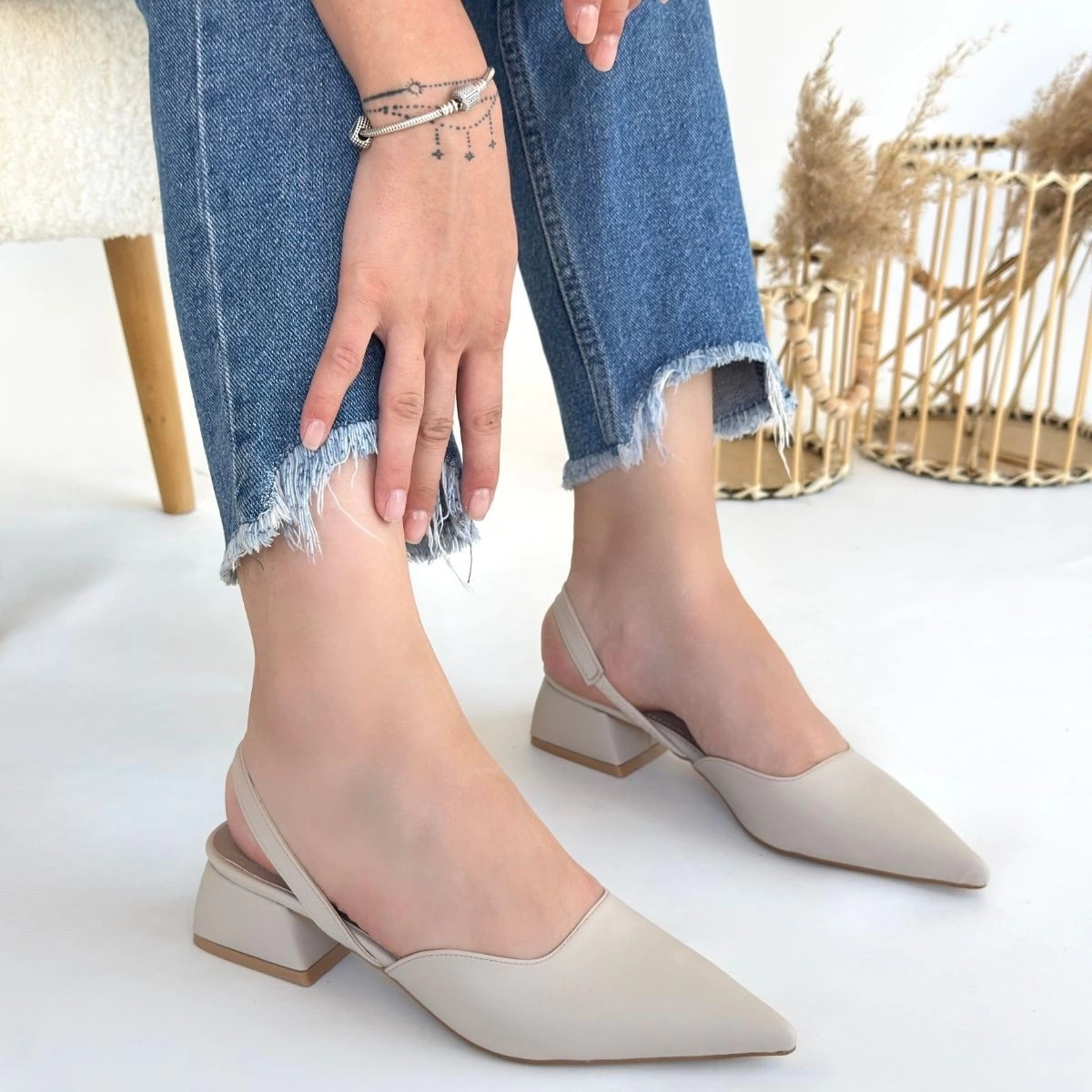 Jenti Bej Cilt Topuklu Ayakkabı (Numara: 36)