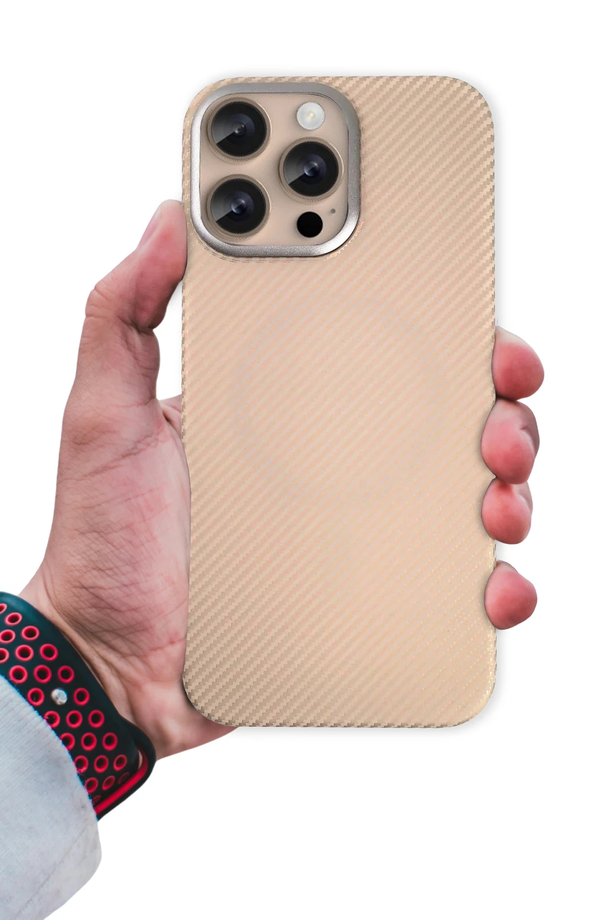 Sağlam, lüks ve hafif bir kılıftır sert plastik ve metal kamera çerçevesiyle tam koruma sağlar. Şık karbon fiber tasarımı modern bir görünüm sağlarken yerleşik MagSafe uyumluluğu da aksesuarların kolay şarj edilmesini ve bağlanmasını sağlar.