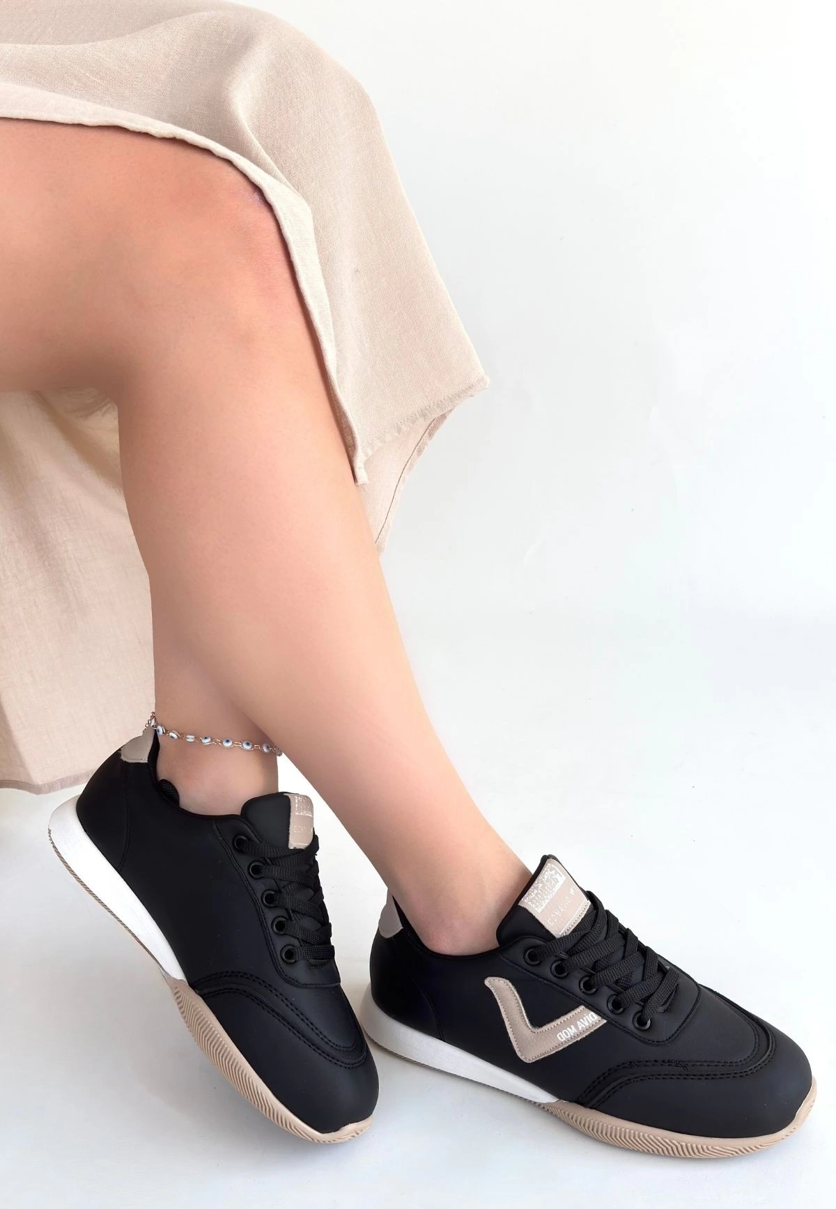 Jowen Siyah Cilt Bej Detaylı Bağcıklı Spor Ayakkabı (Numara: 36)