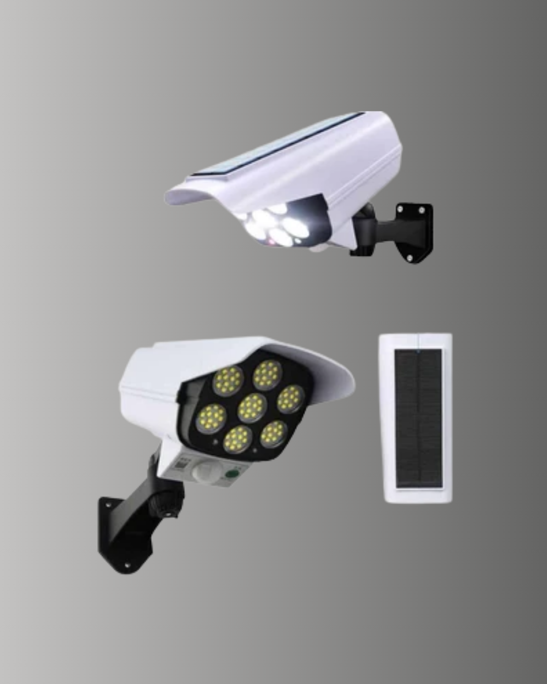 Bu akıllı güneş ışığı, hem çevresel güvenlik sağlayan LED aydınlatma hem de kamera görünümü ile etkili bir caydırıcılık sunar. LED ışık kaynağı olarak kullanılan 77 adet SMD boncuğu, yüksek parlaklıkta aydınlatma sağlar. Cihazın üst kısmında bulunan polisilikon güneş paneli gün içinde bataryayı şarj eder.