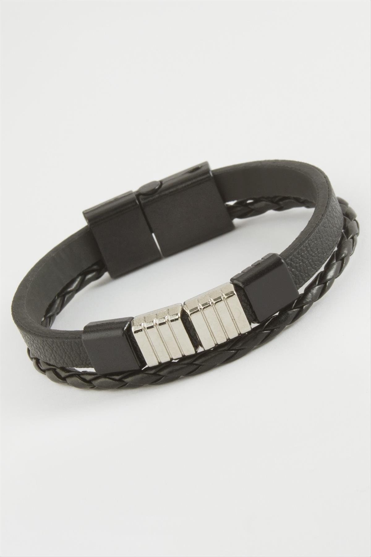 Kaliteli Mıknatıslı Suni Deri Bileklik-Siyah