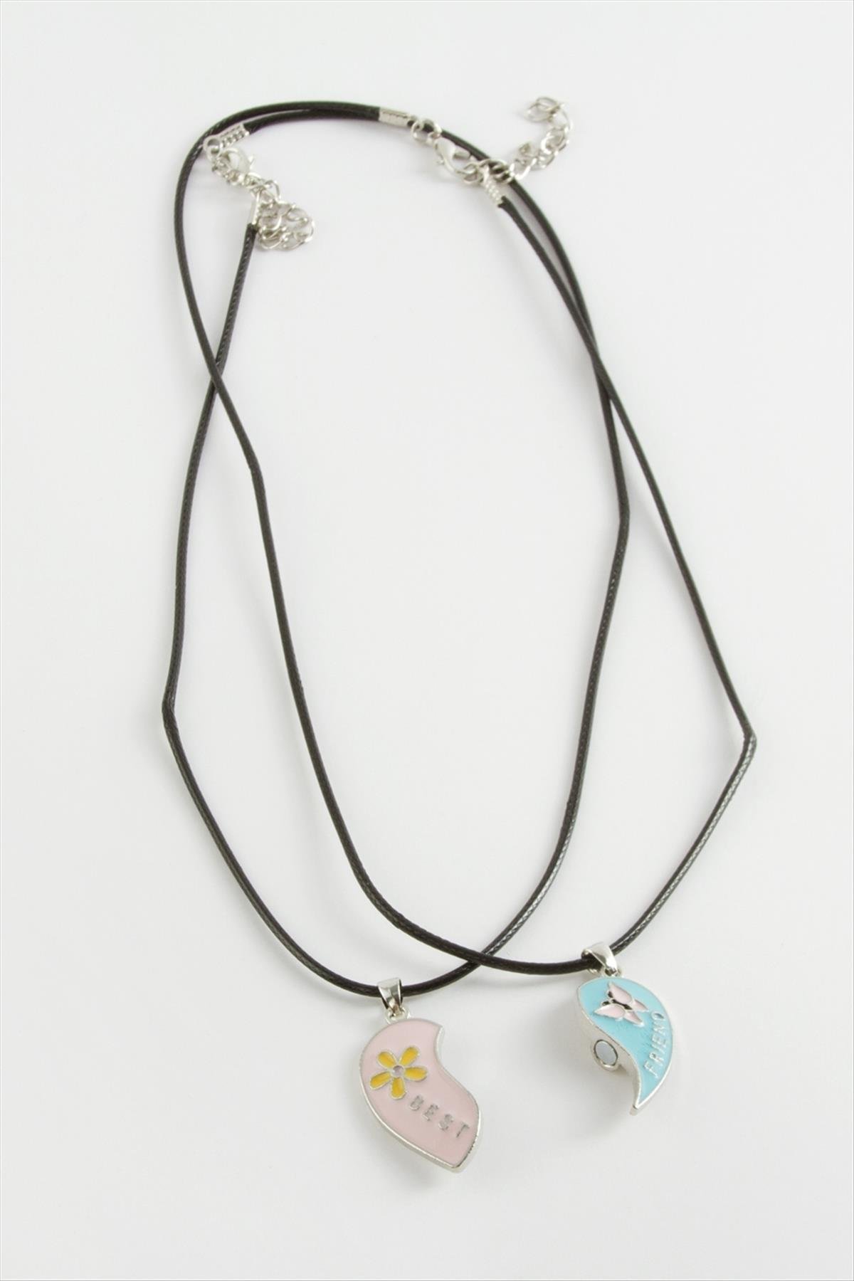 Kalp Arkadaşlık Kolyesi Çift Kolye-Siyah