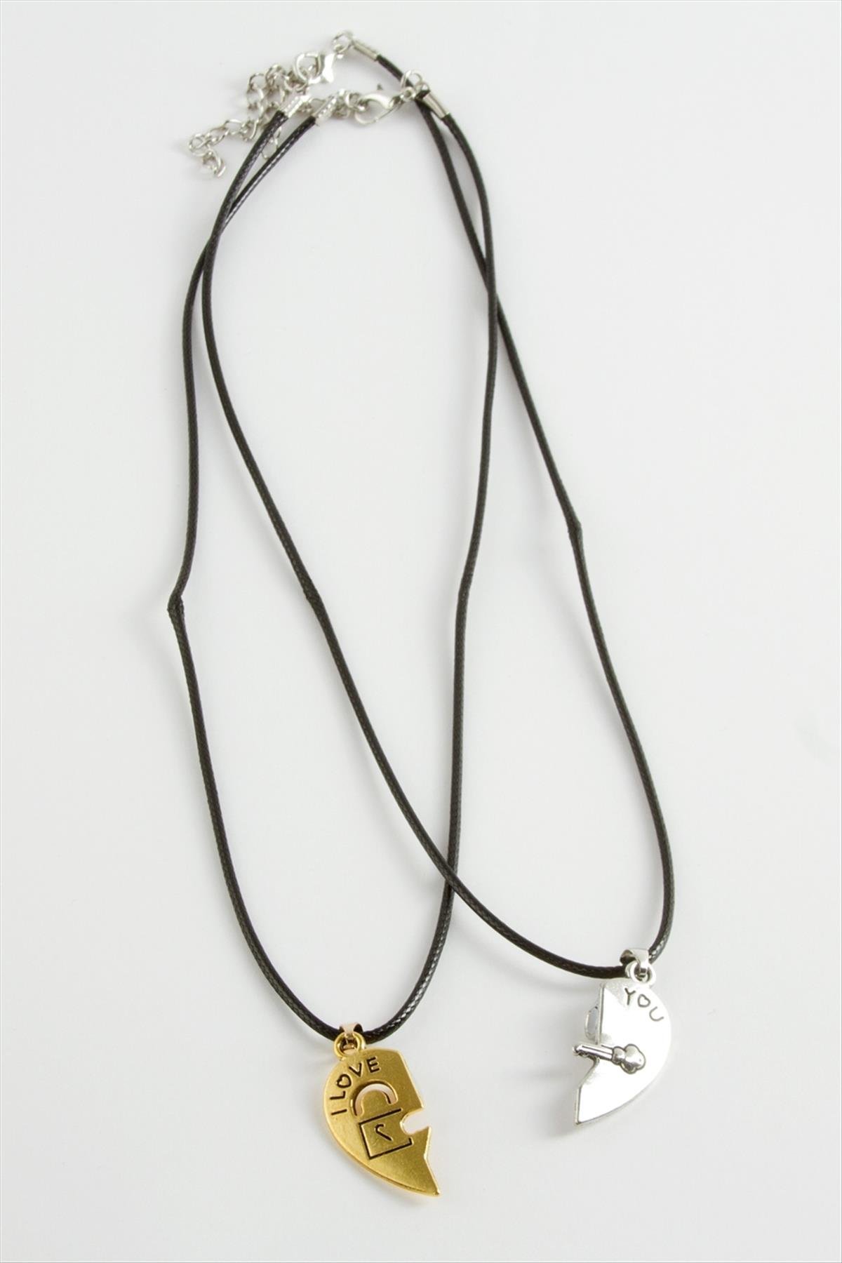 Kalp Arkadaşlık Kolyesi Çift Kolye-Siyah
