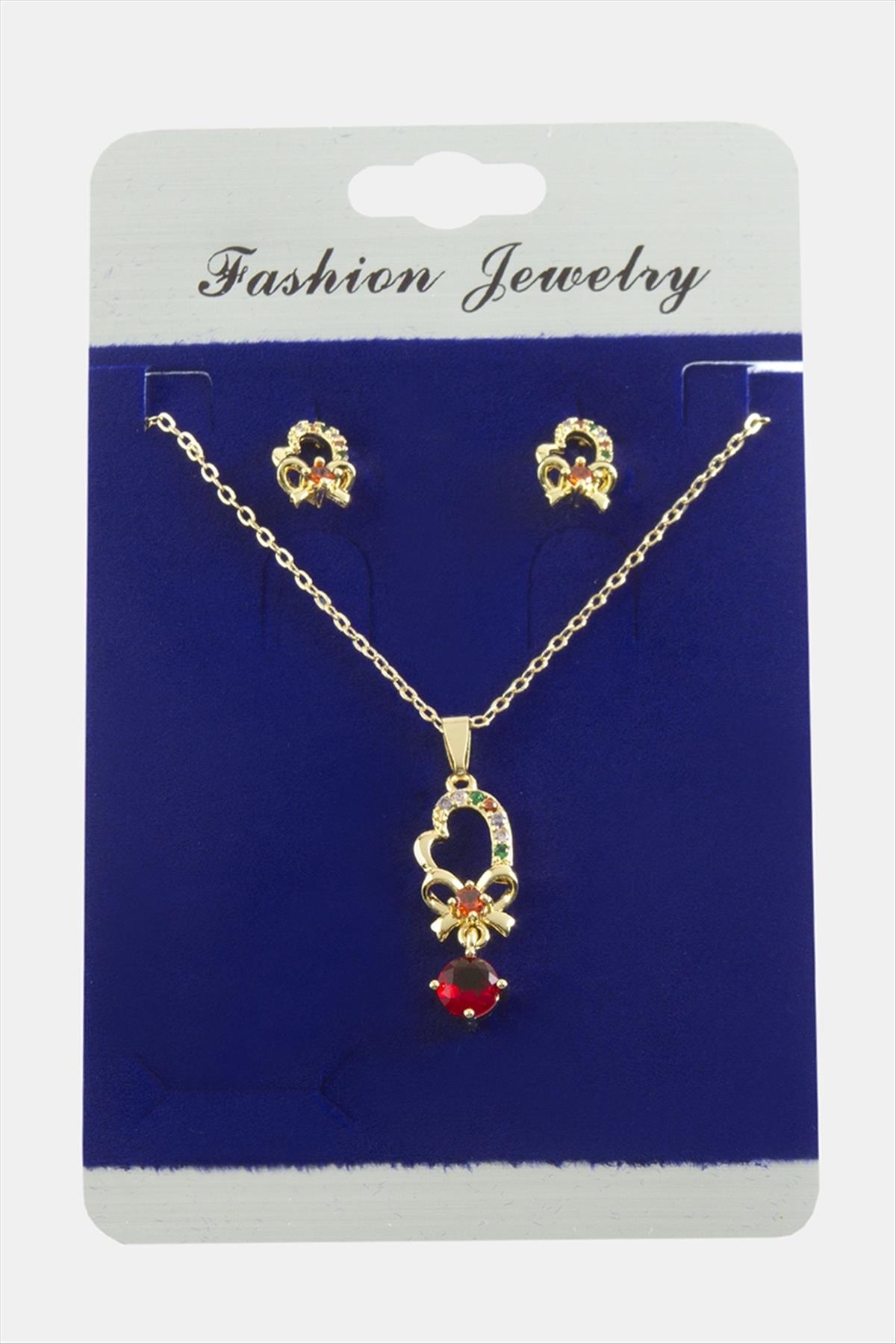 Kalp Fiyong Zirkon Taşlı Set Kolye-Renkli