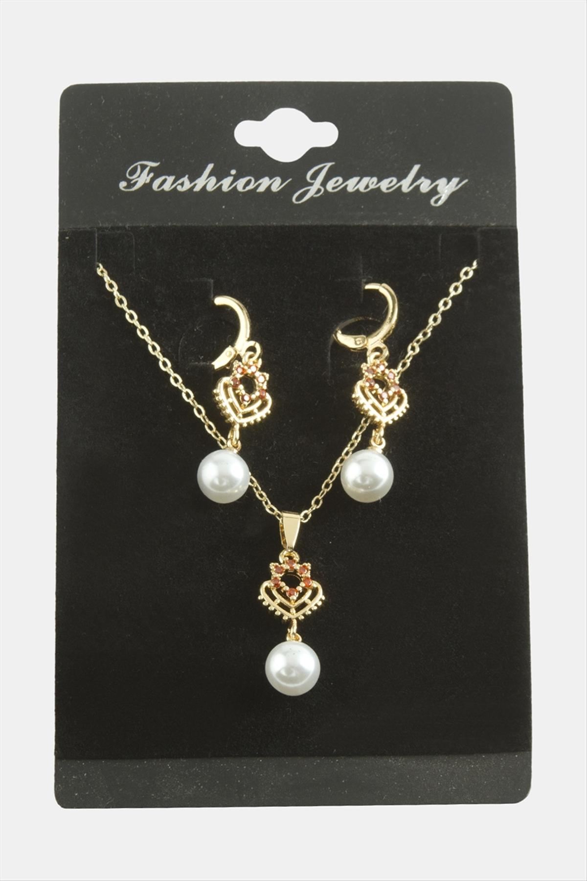 Kalp İnci Zirkon Taşlı Set Kolye