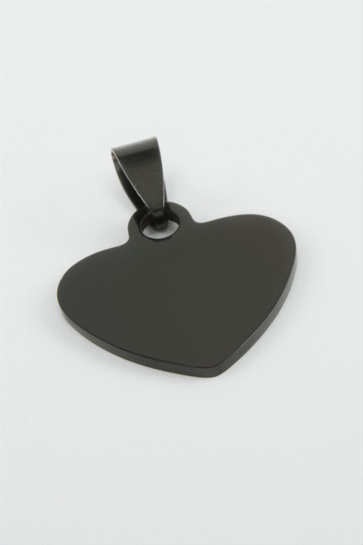 Kalp İsim Yazılabilir Çelik Kolye Ucu 2,3 cm-Siyah