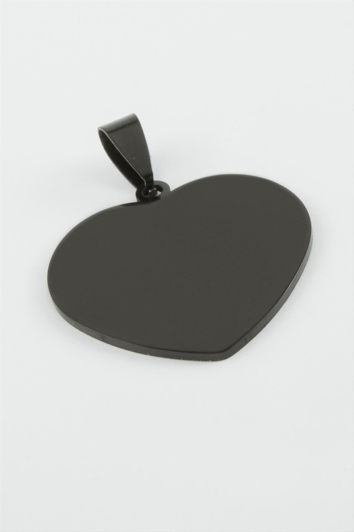 Kalp İsim Yazılabilir Çelik Kolye Ucu 2,5 cm-Siyah
