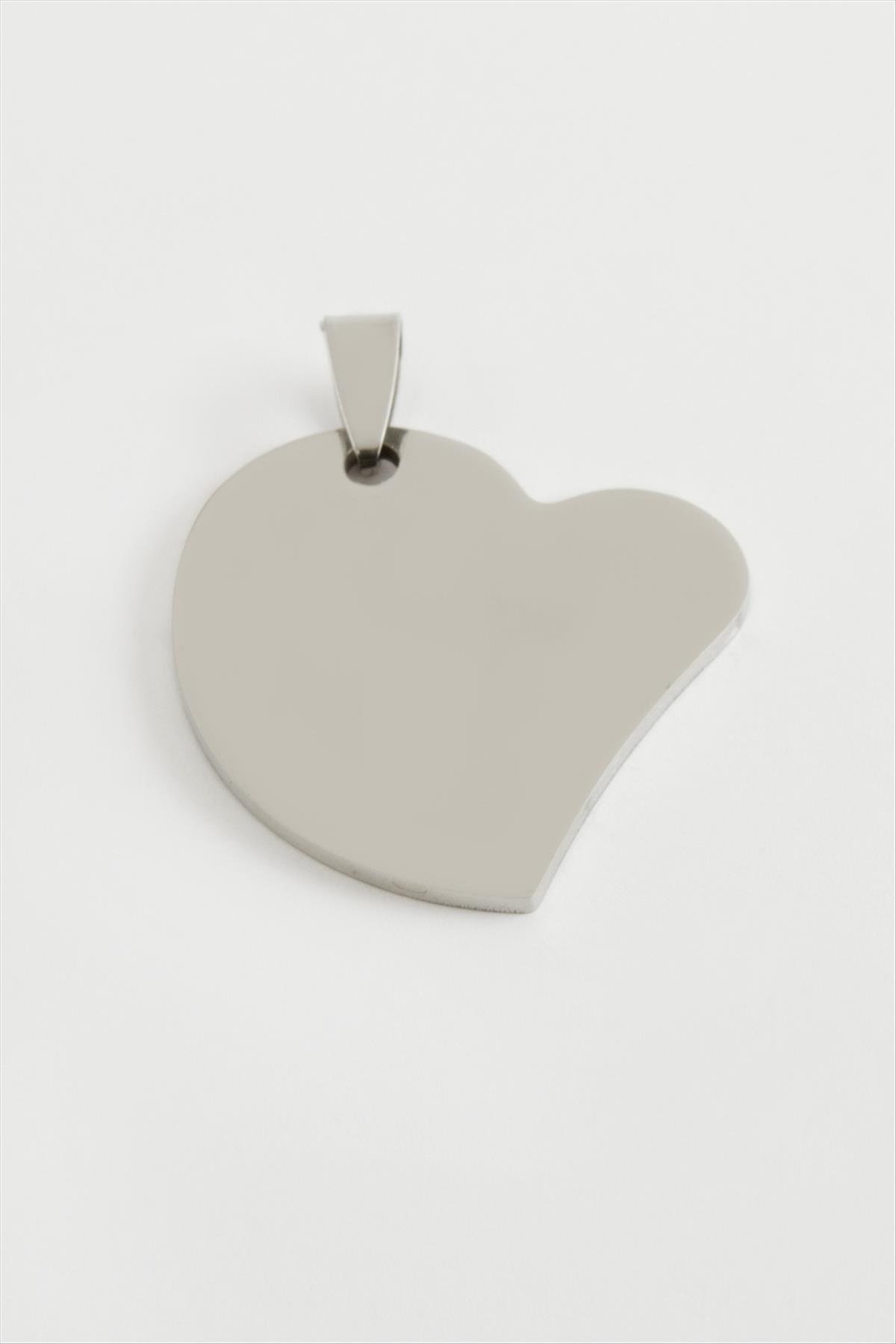 Kalp İsim Yazılabilir Çelik Kolye Ucu 3,5 cm