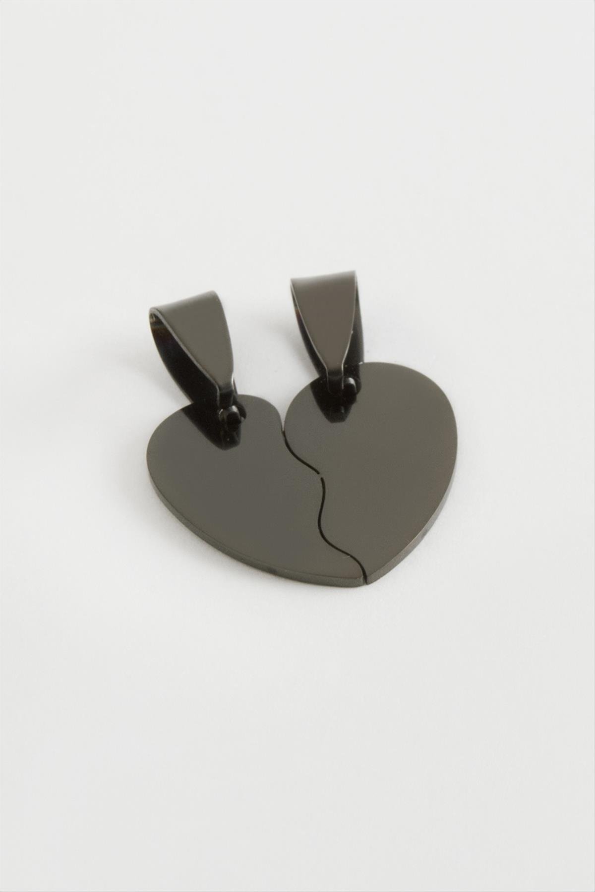 Kalp İsim Yazılabilir Çift Çelik Kolye Ucu 2 cm-Siyah