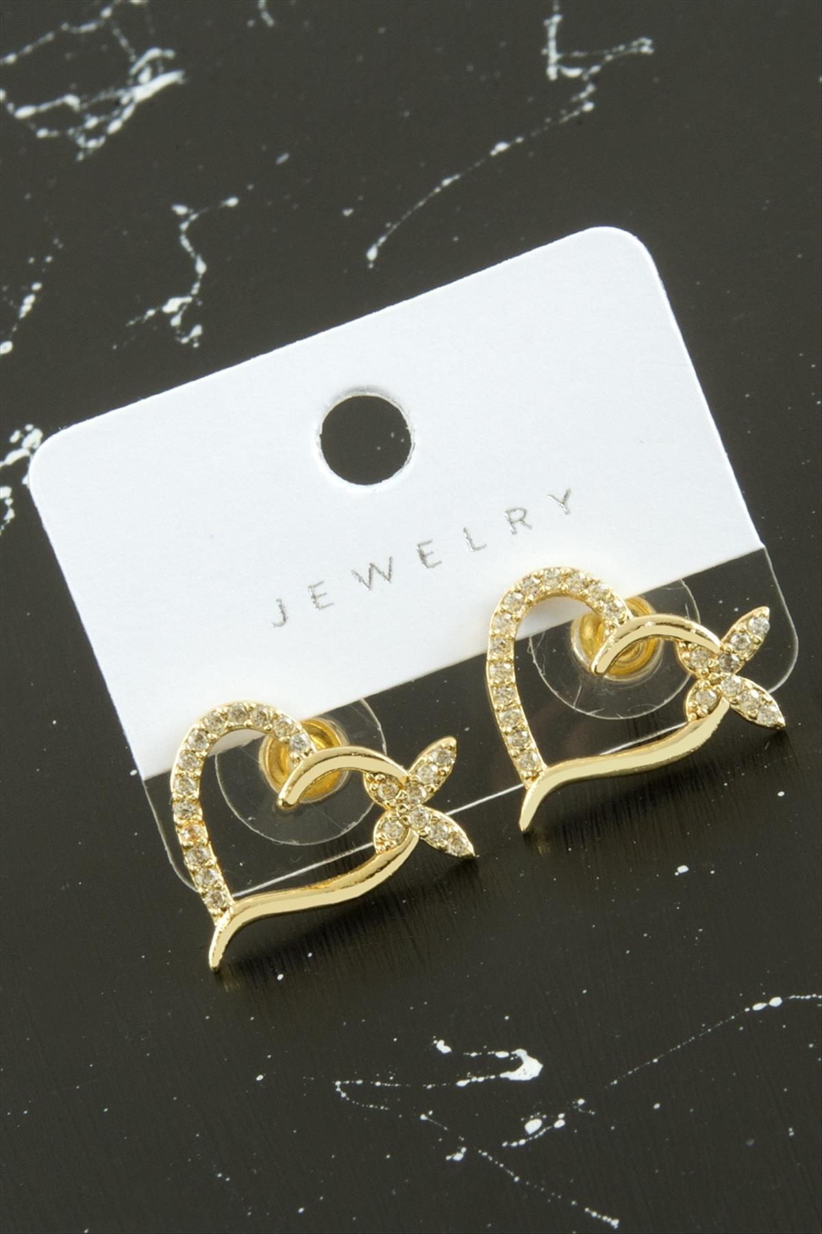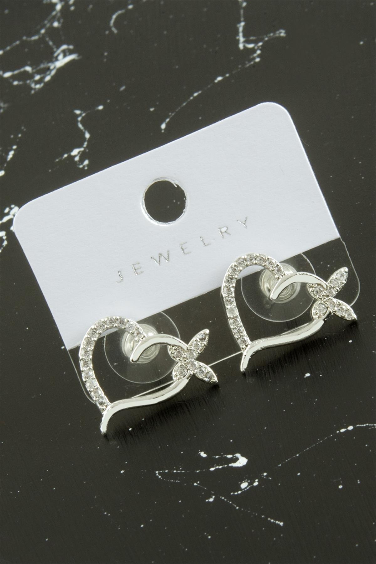 Kalp Kelebek Zirkon Taşlı Küpe-Gümüş Rengi