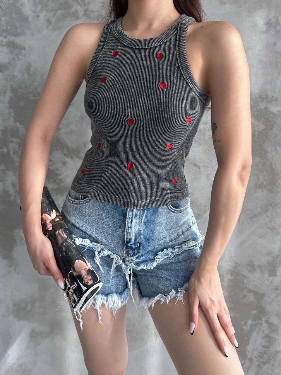 Kalp nakışlı bluz Antrasit (Beden: STANDART)