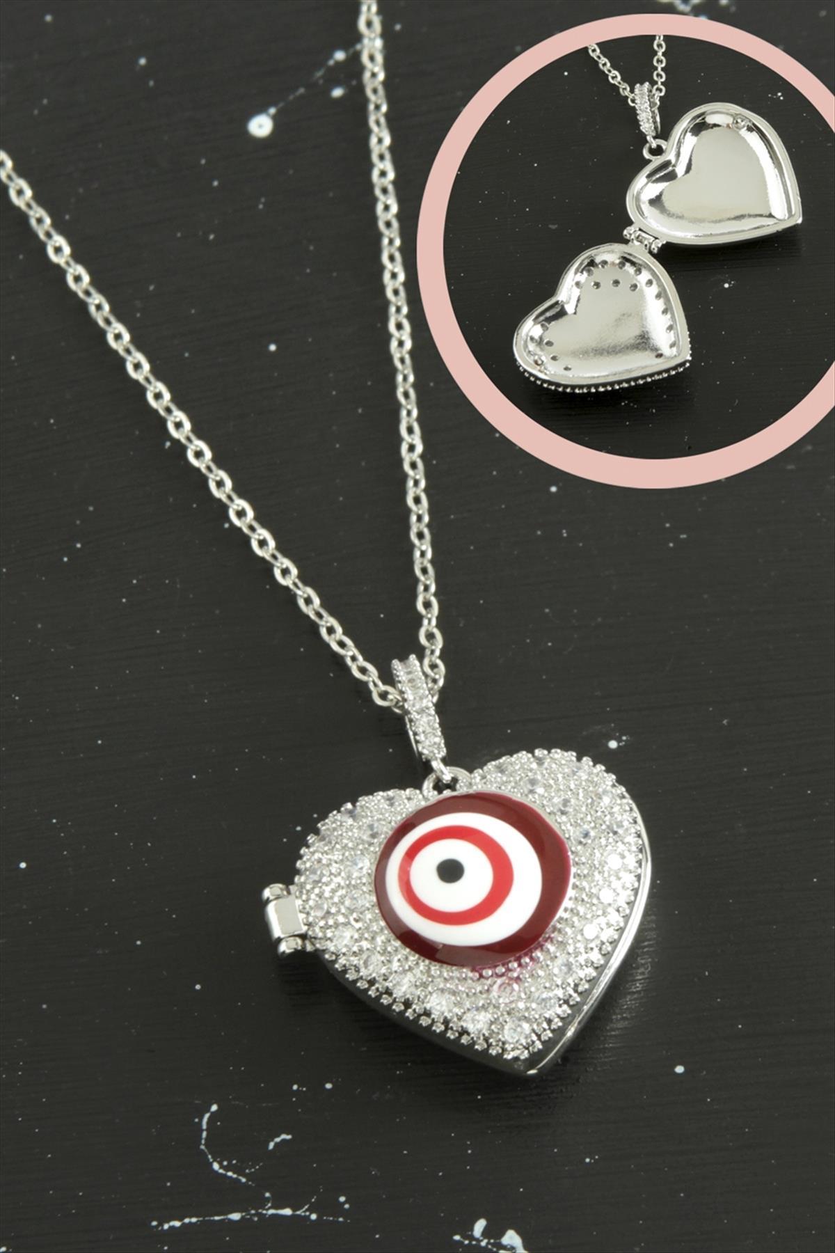Kalp Nazar Kapaklı Zirkon Taşlı Çelik Kolye