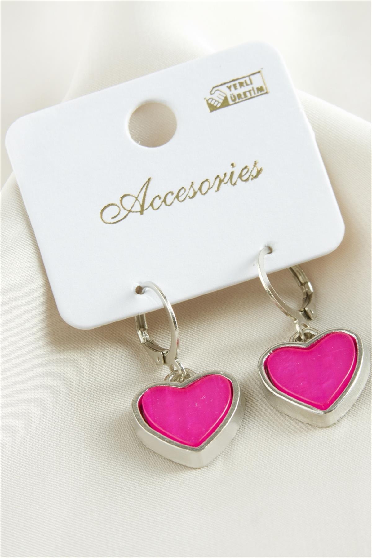 Kalp Polyester Küpe-Pembe