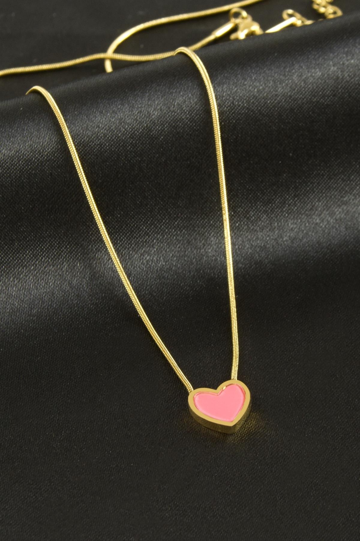 Kalp Sedef Lüks Çelik Kolye-Pembe
