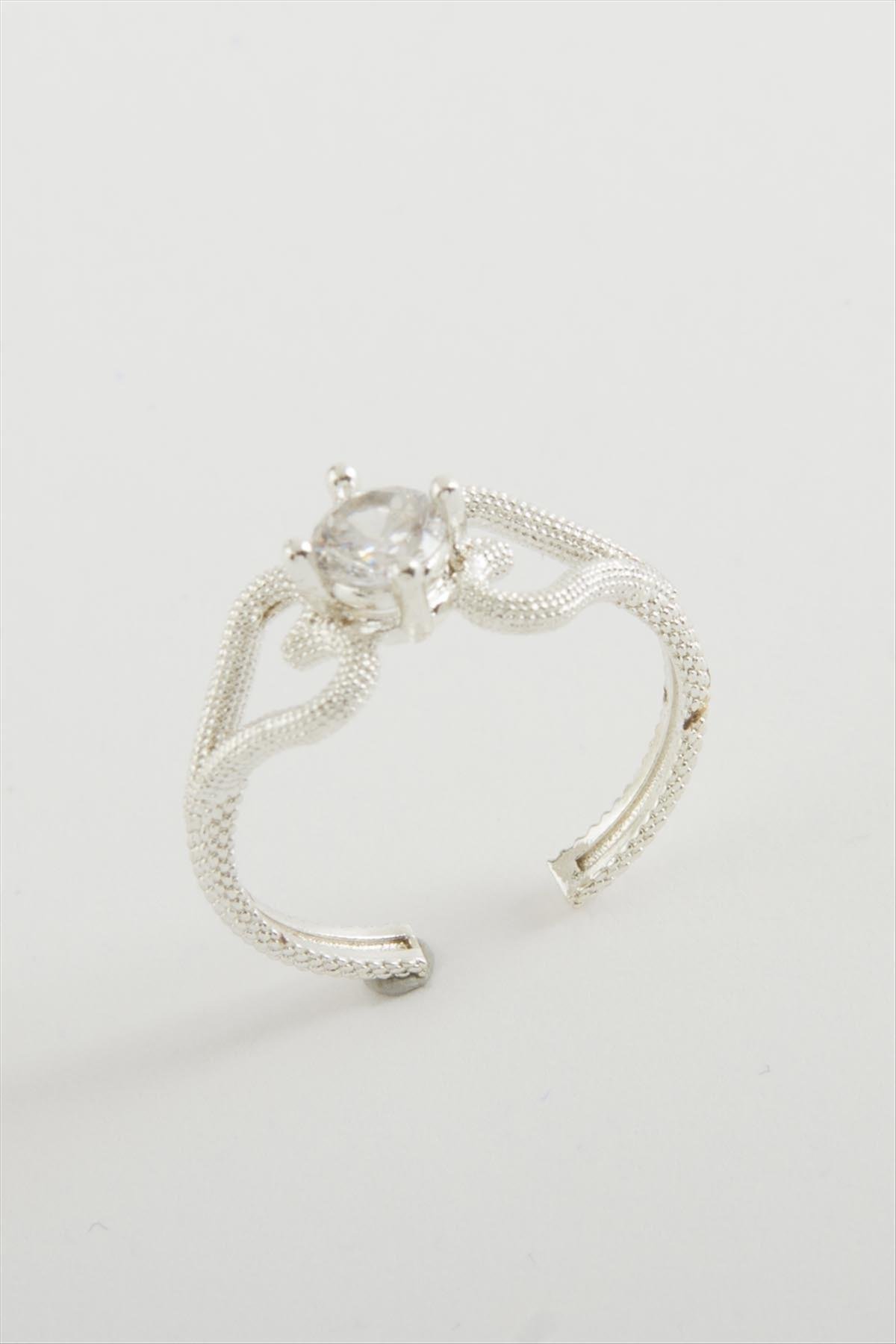 Kalp Tek Taşlı Yüzük-Gümüş Rengi