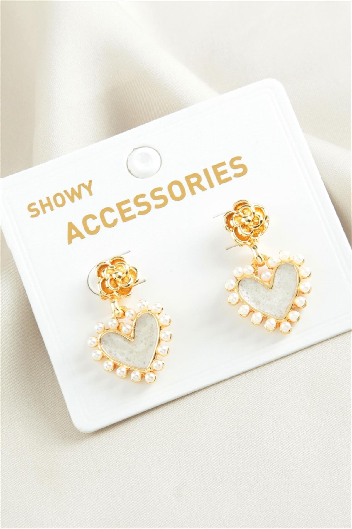 Kalp Trend İnci Küpe