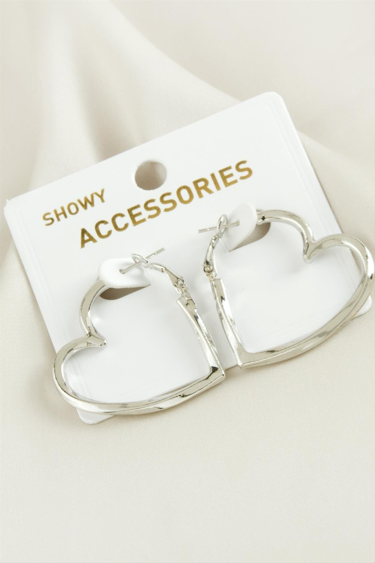 Kalp Trend Metal Küpe 3 cm-Gümüş Rengi