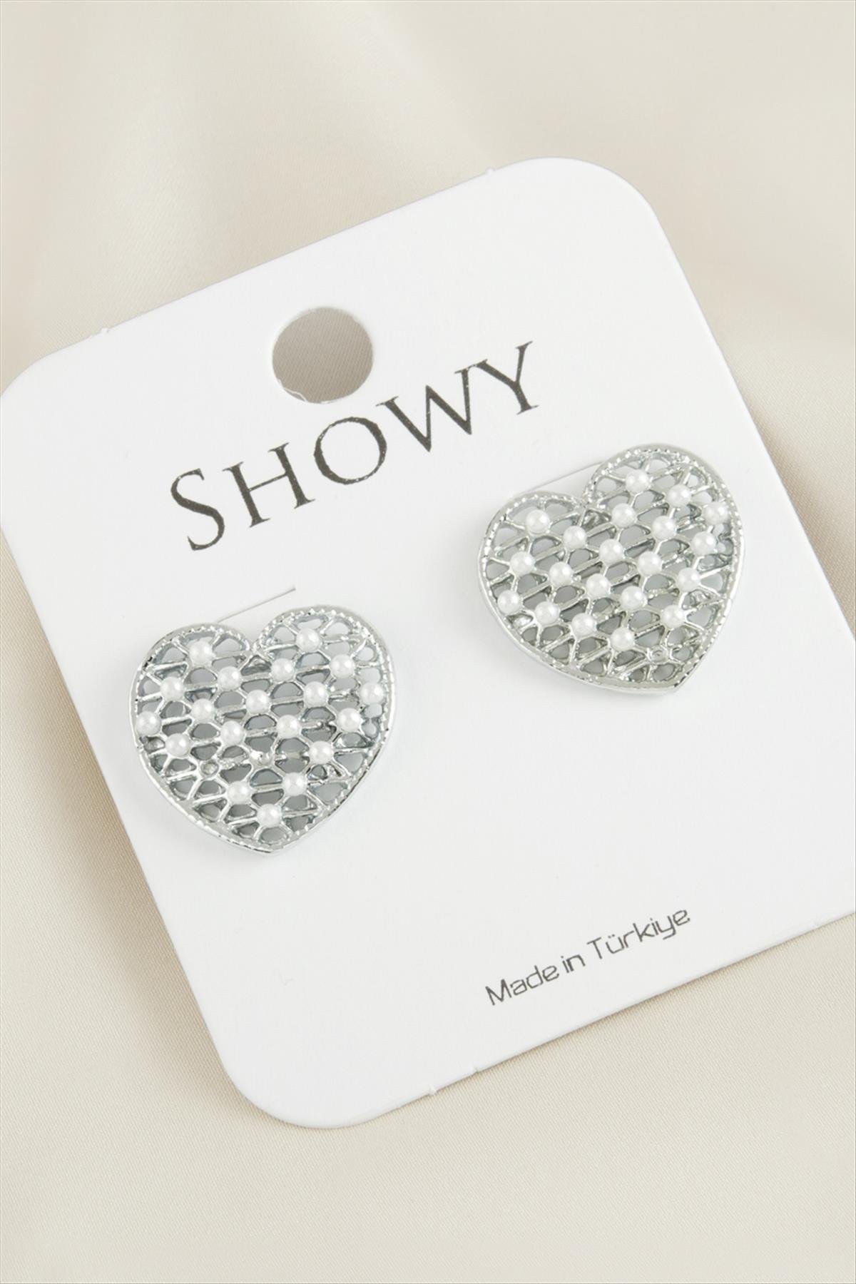 Kalp Yeni Sezon İnci Küpe-Gümüş Rengi