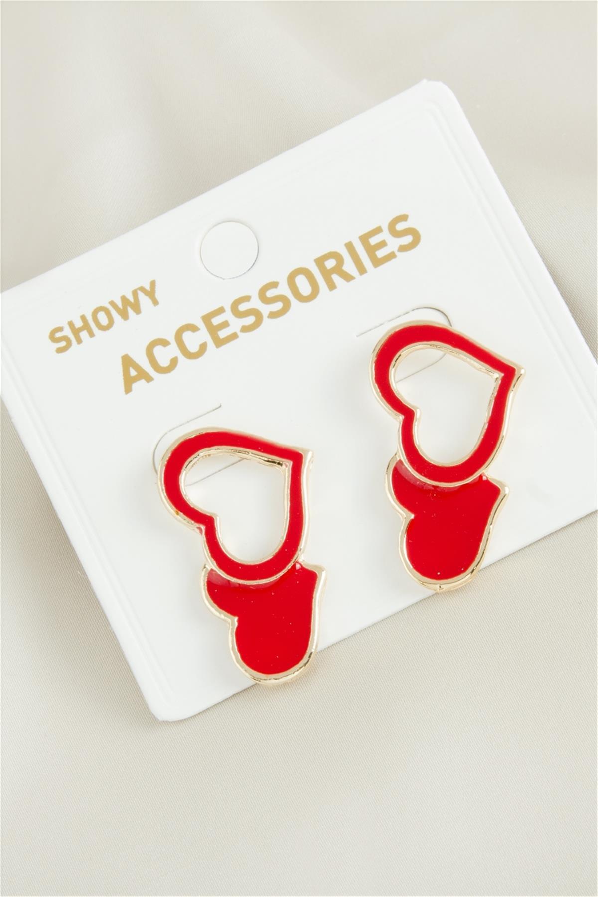 Kalp Yeni Sezon Mineli Küpe-Kırmızı