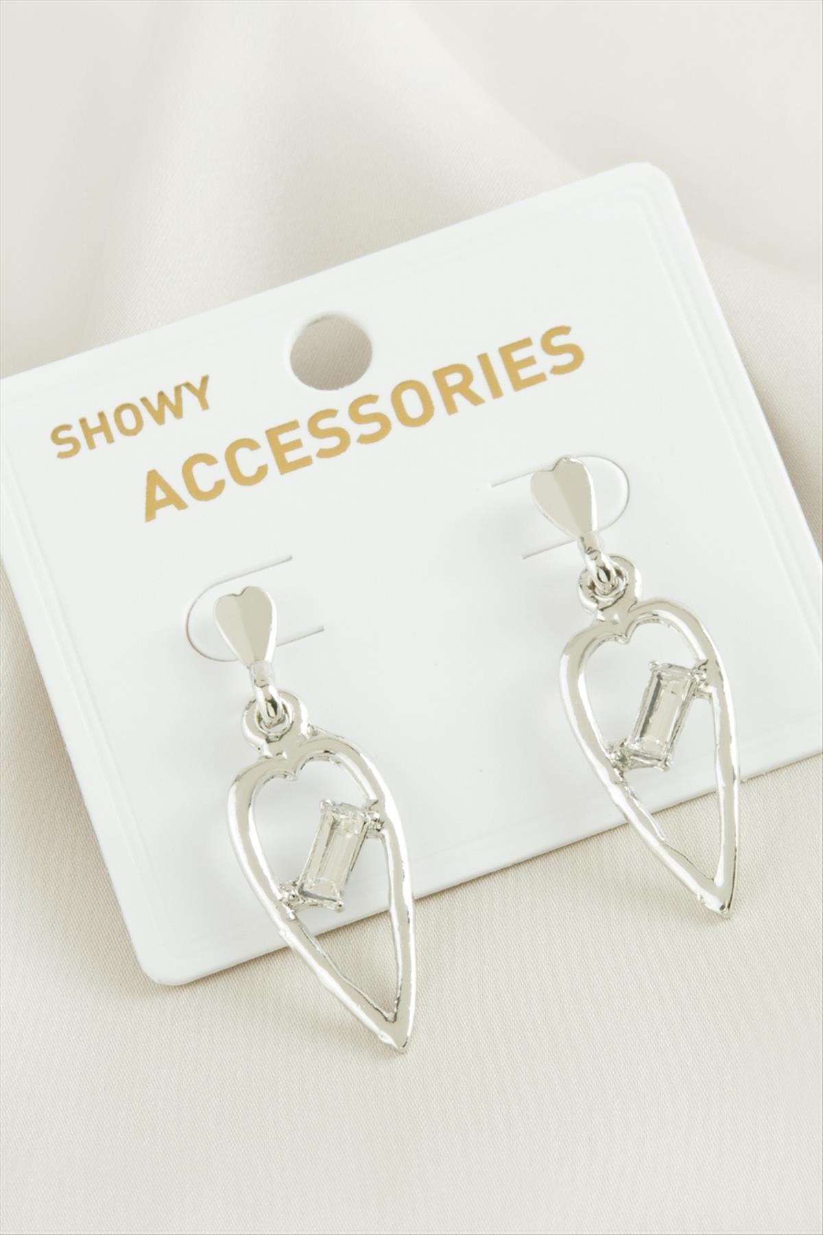 Kalp Yeni Sezon Taşlı Küpe-Gümüş Rengi