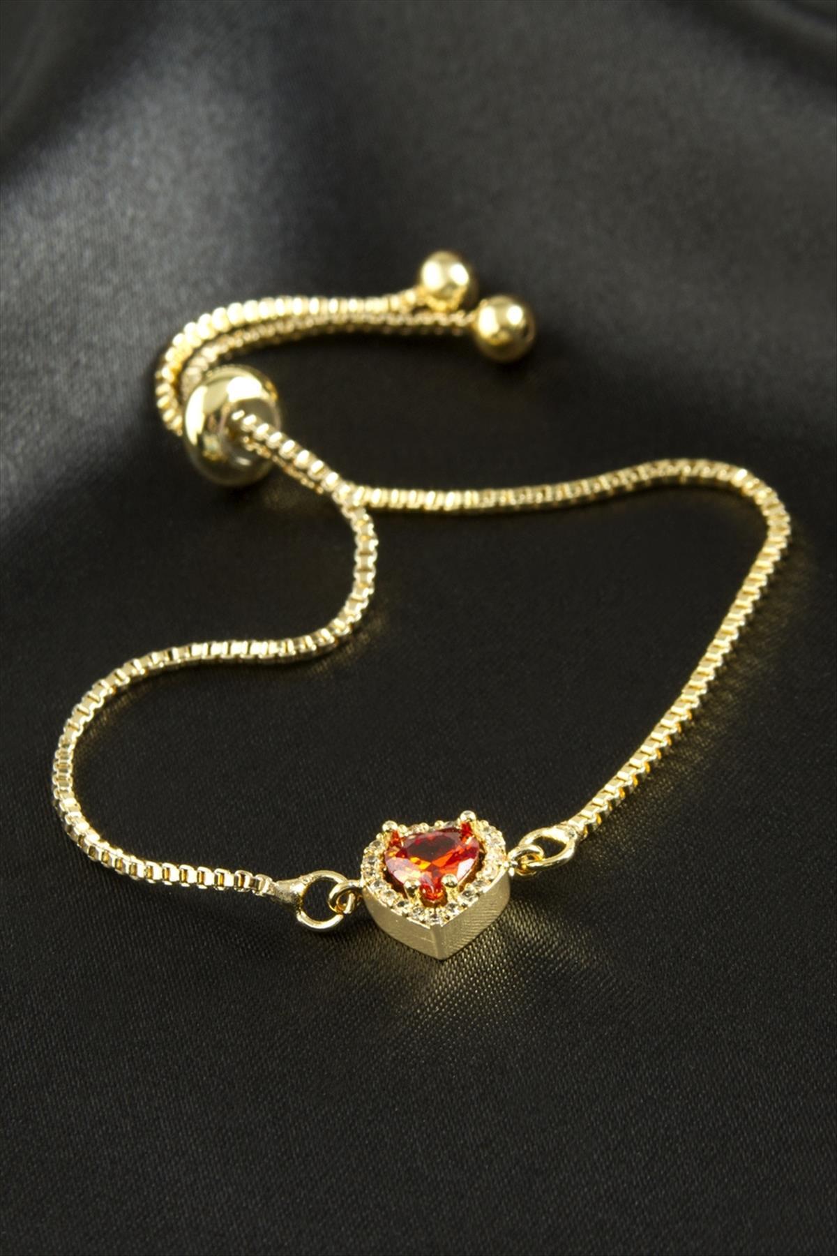 Kalp Zirkon Taşlı Asansörlü Bileklik Ciddi İlişki Bilekliği-Kırmızı