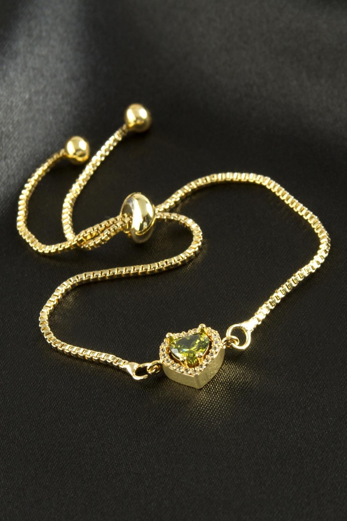 Kalp Zirkon Taşlı Asansörlü Bileklik Ciddi İlişki Bilekliği-Yeşil