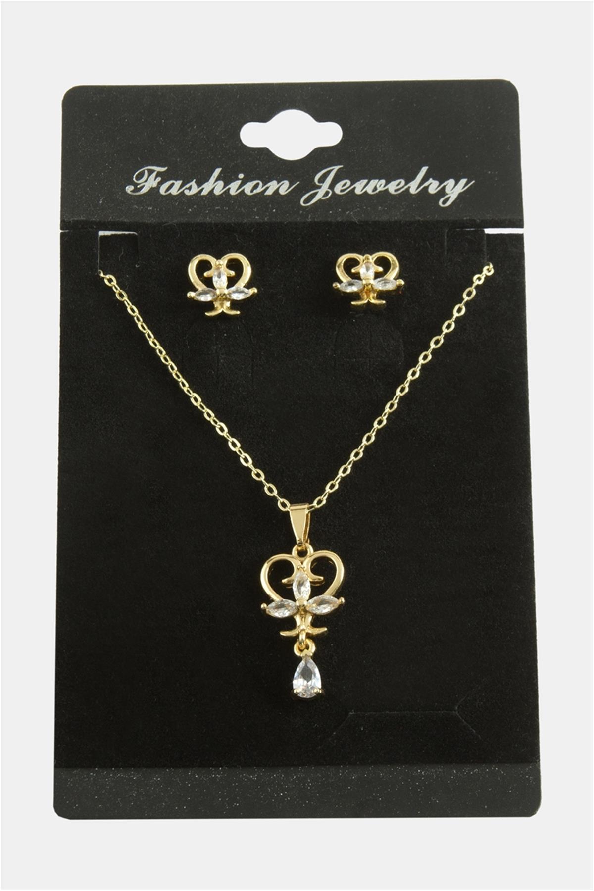 Kalp Zirkon Taşlı Set Kolye-Gümüş Rengi