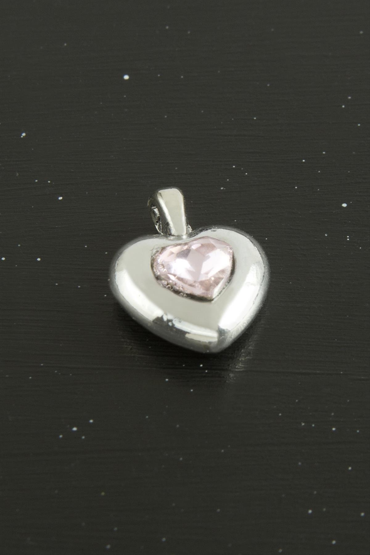 Kalp Zirkon Taşlı Tek Kulplu Aparat 1 Adet-Açık Pembe
