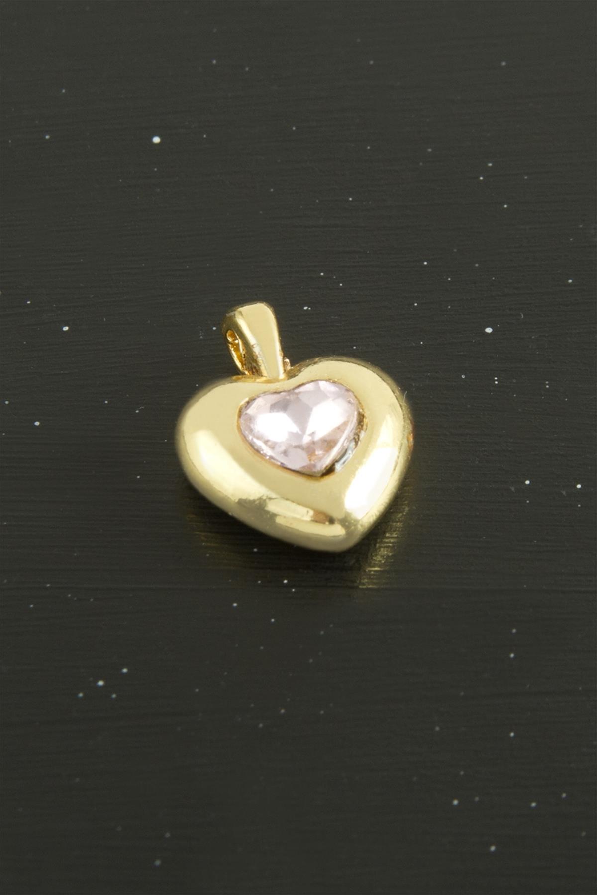 Kalp Zirkon Taşlı Tek Kulplu Aparat 1 Adet-Pembe