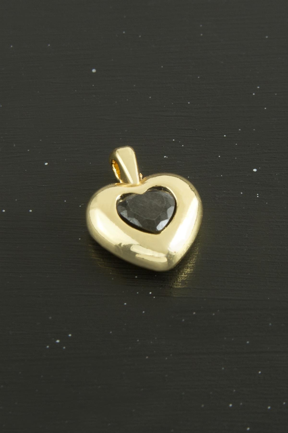 Kalp Zirkon Taşlı Tek Kulplu Aparat 1 Adet-Siyah