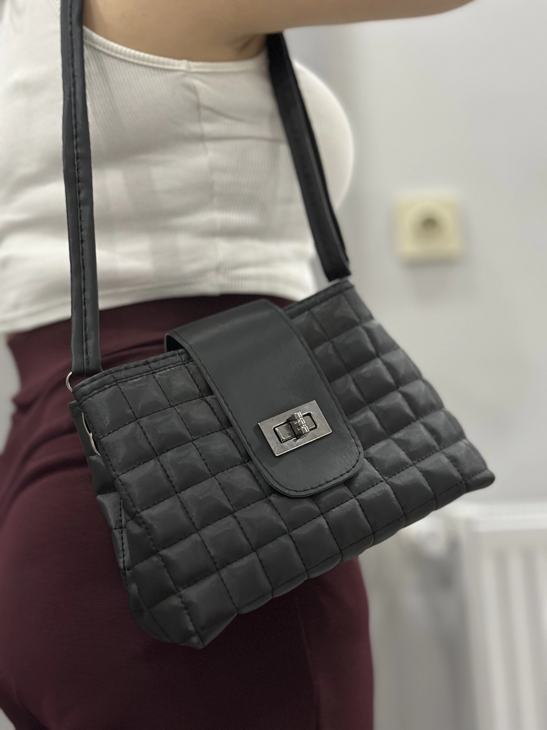Kapaklı kapitone siyah cilt çanta (Beden: STANDART)