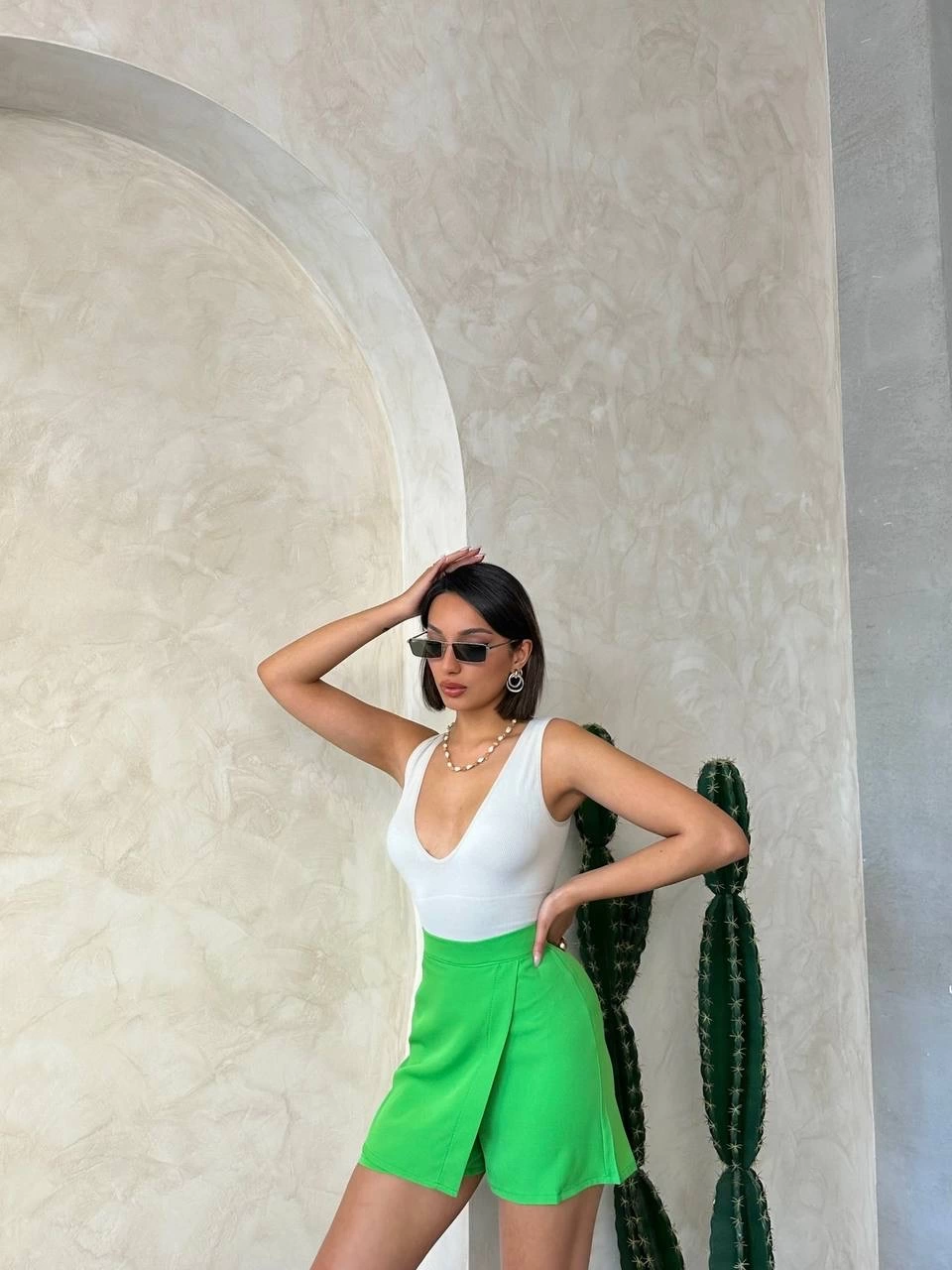 Kapaklı Şort Etek Yeşil S24901 (Beden: S)