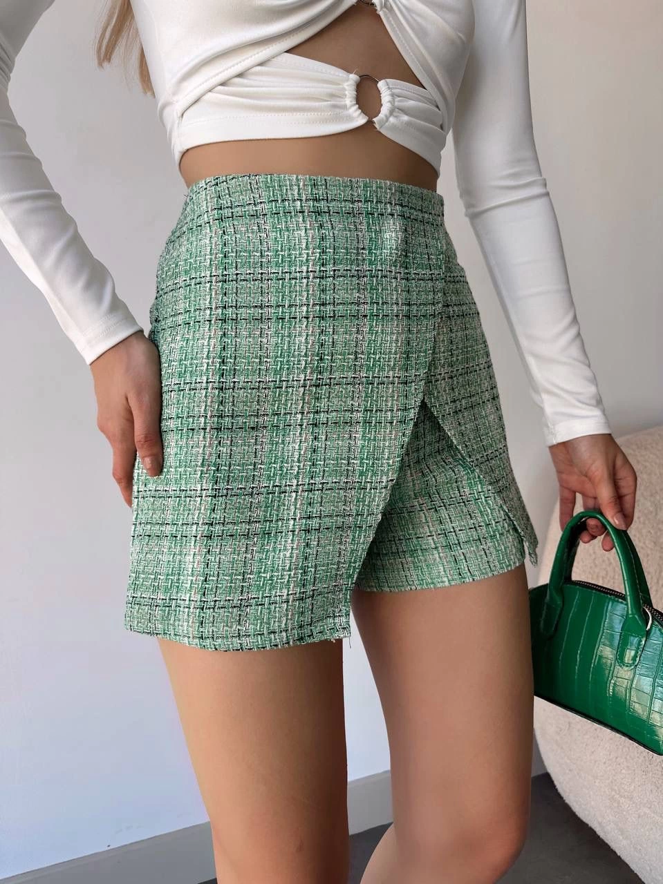 Kapaklı tüvit şort etek yeşil (Beden: M)