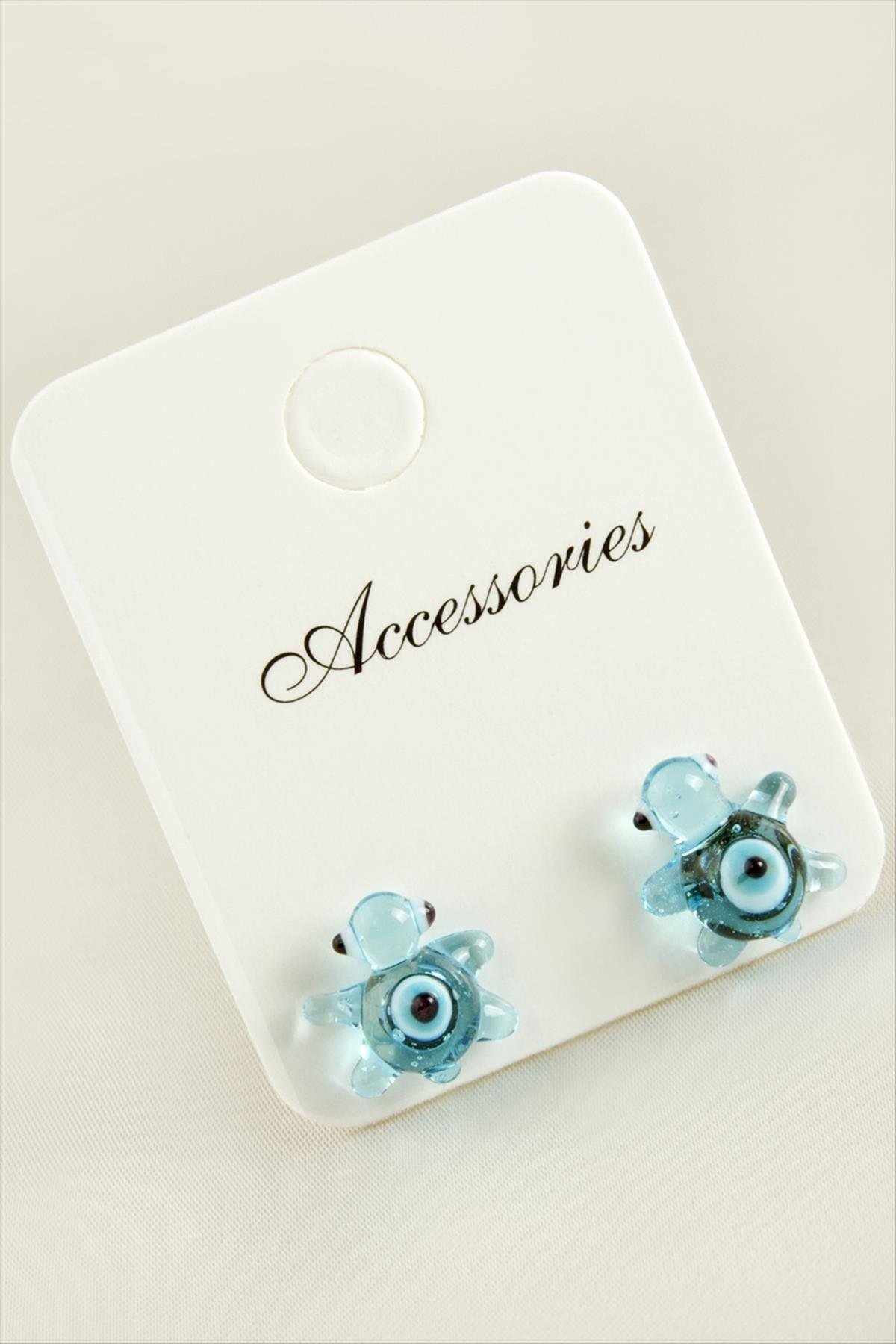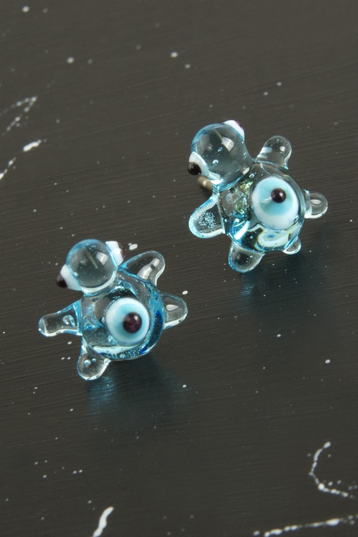 Kaplumbağa Cam Küpe-Açık Mavi