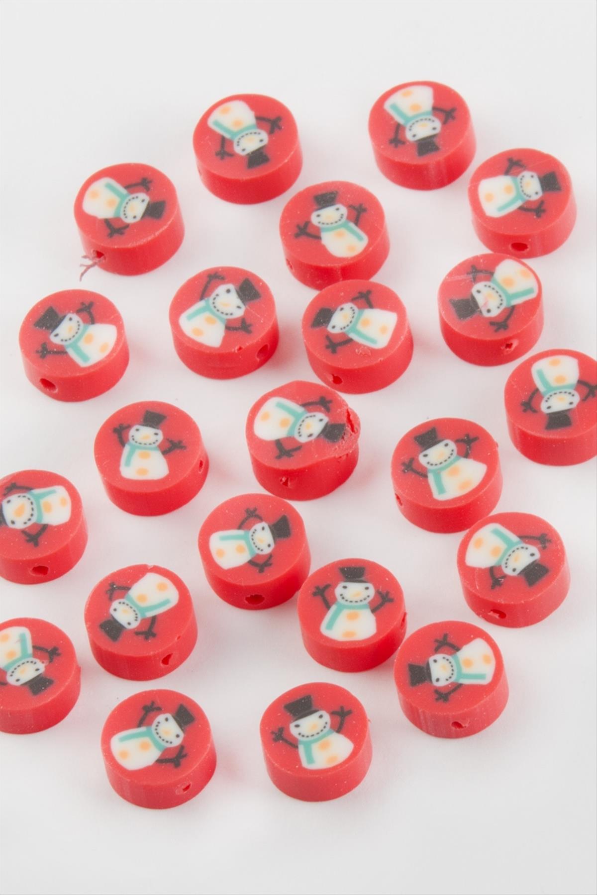 Kardan Adam Yılbaşı Fimo Boncuk 100 Adet-Kırmızı