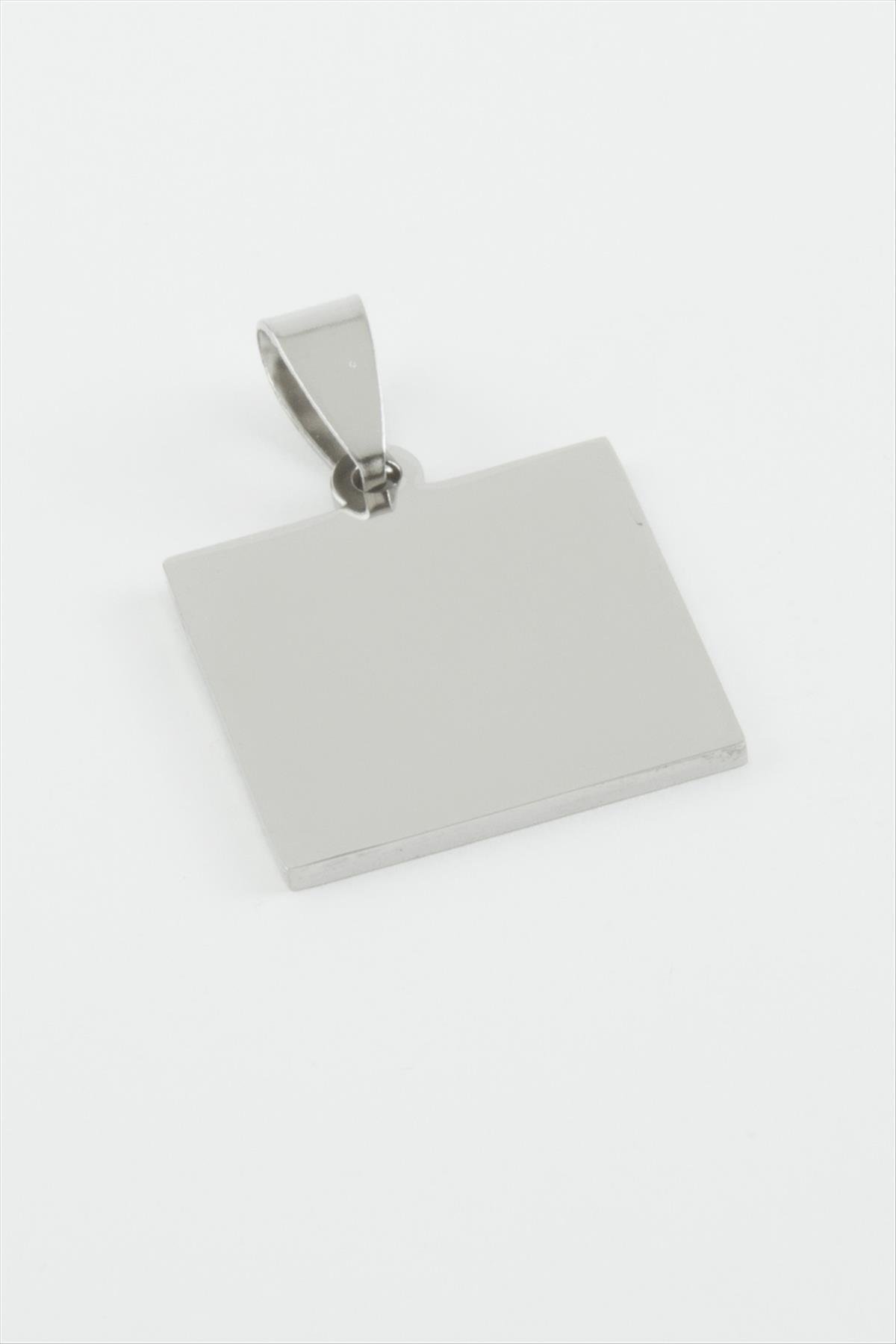 Kare İsim Yazılabilir Çelik Kolye Ucu