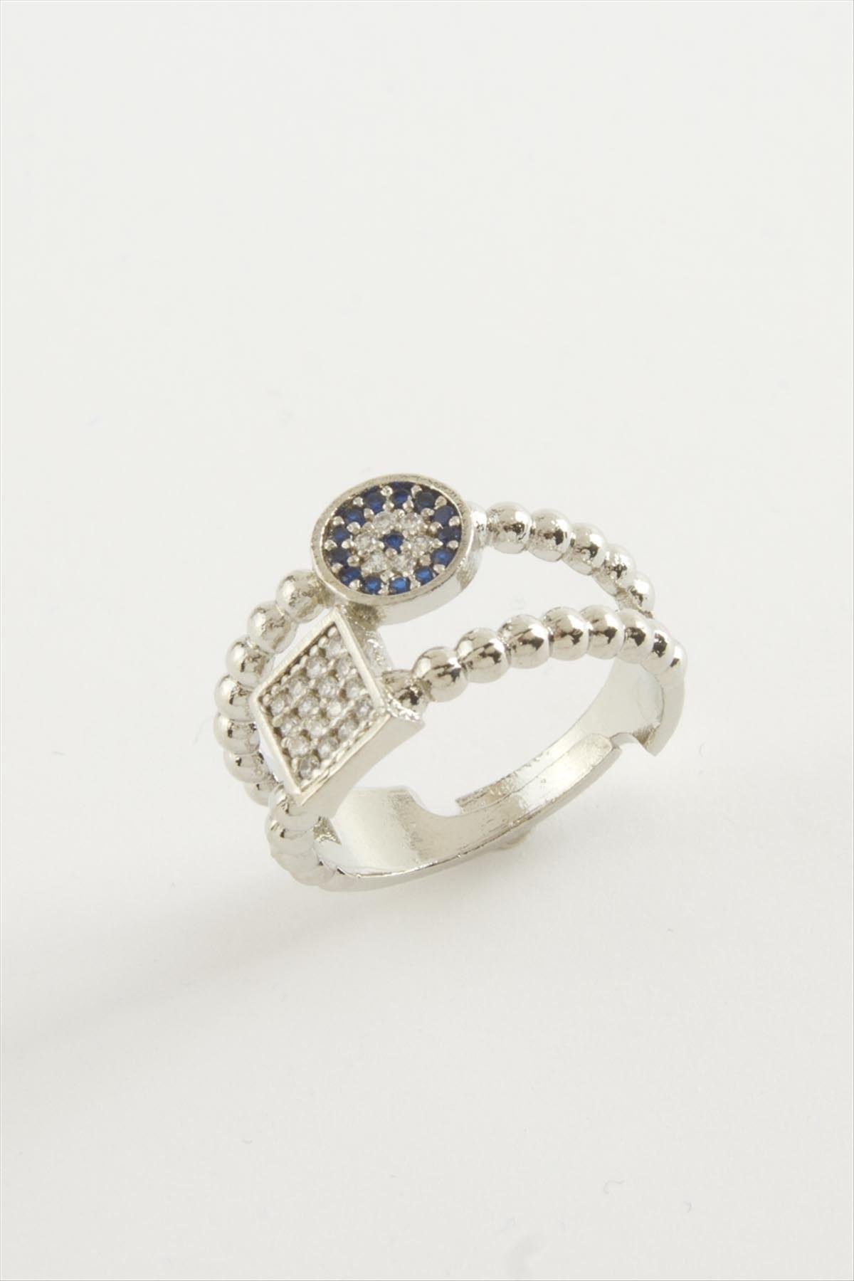 Kare Nazar Taşlı Yüzük-Gümüş Rengi