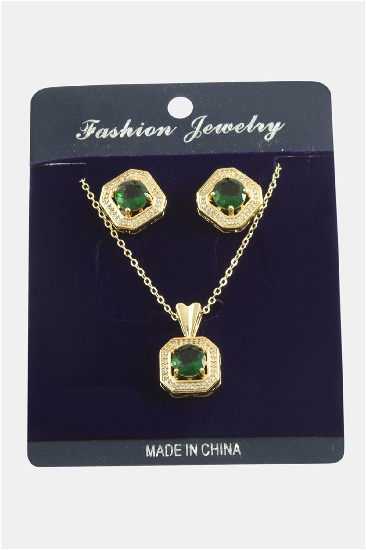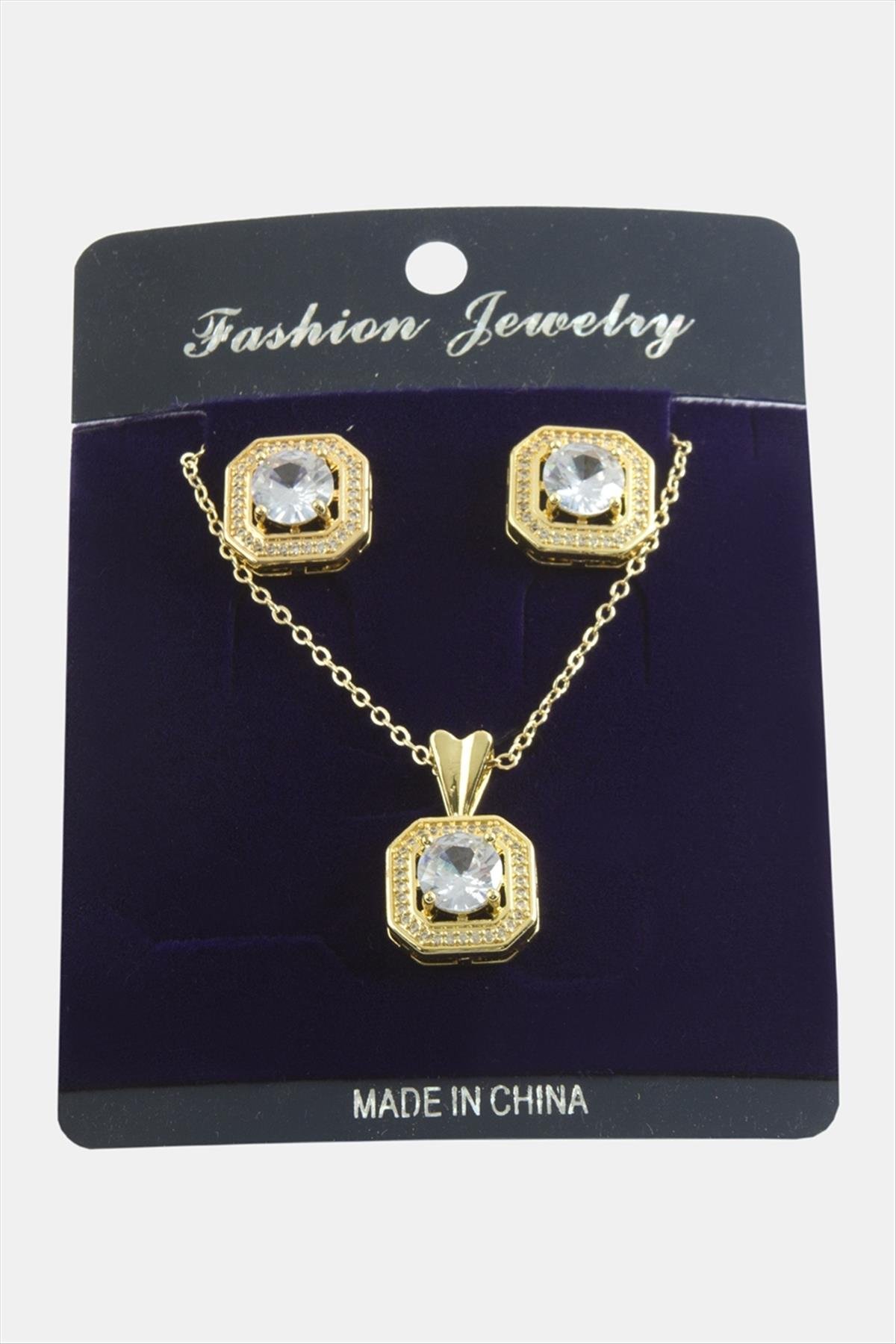 Kare Zirkon Taşlı Set Kolye