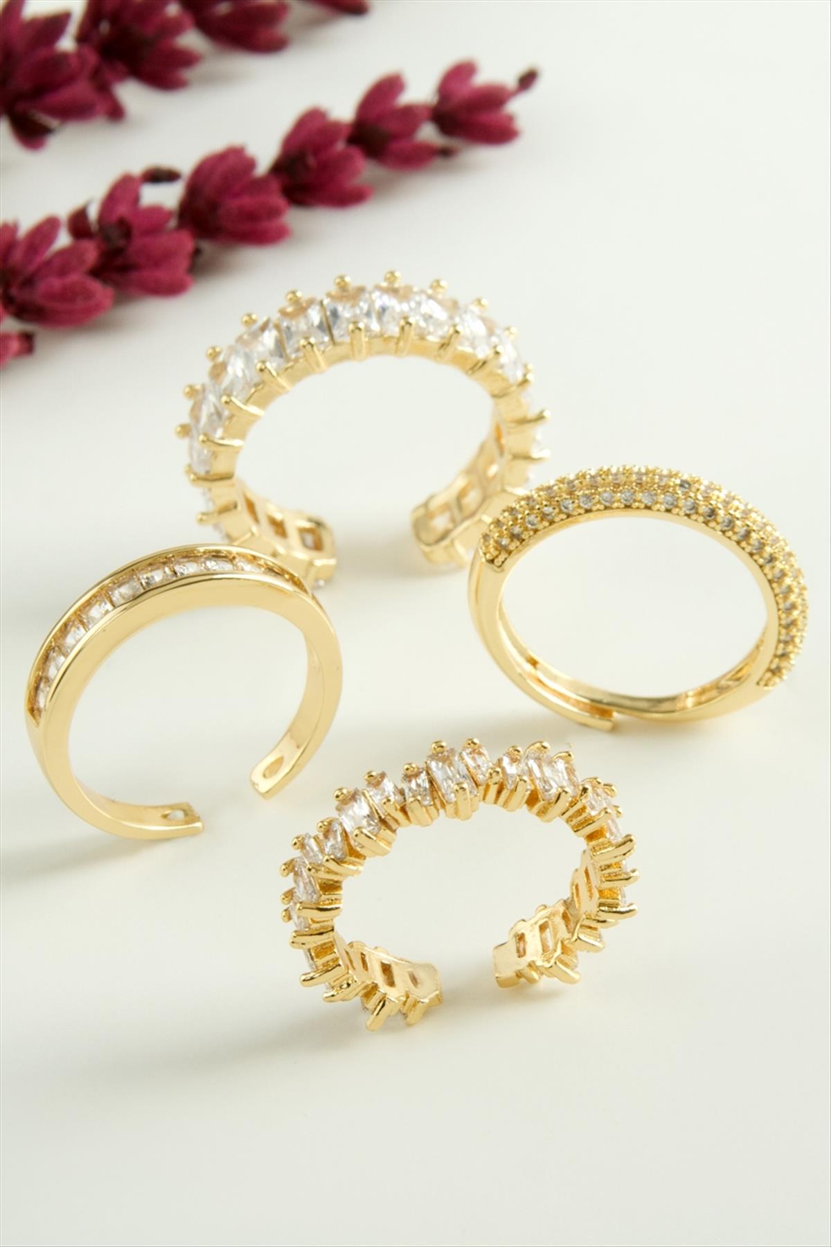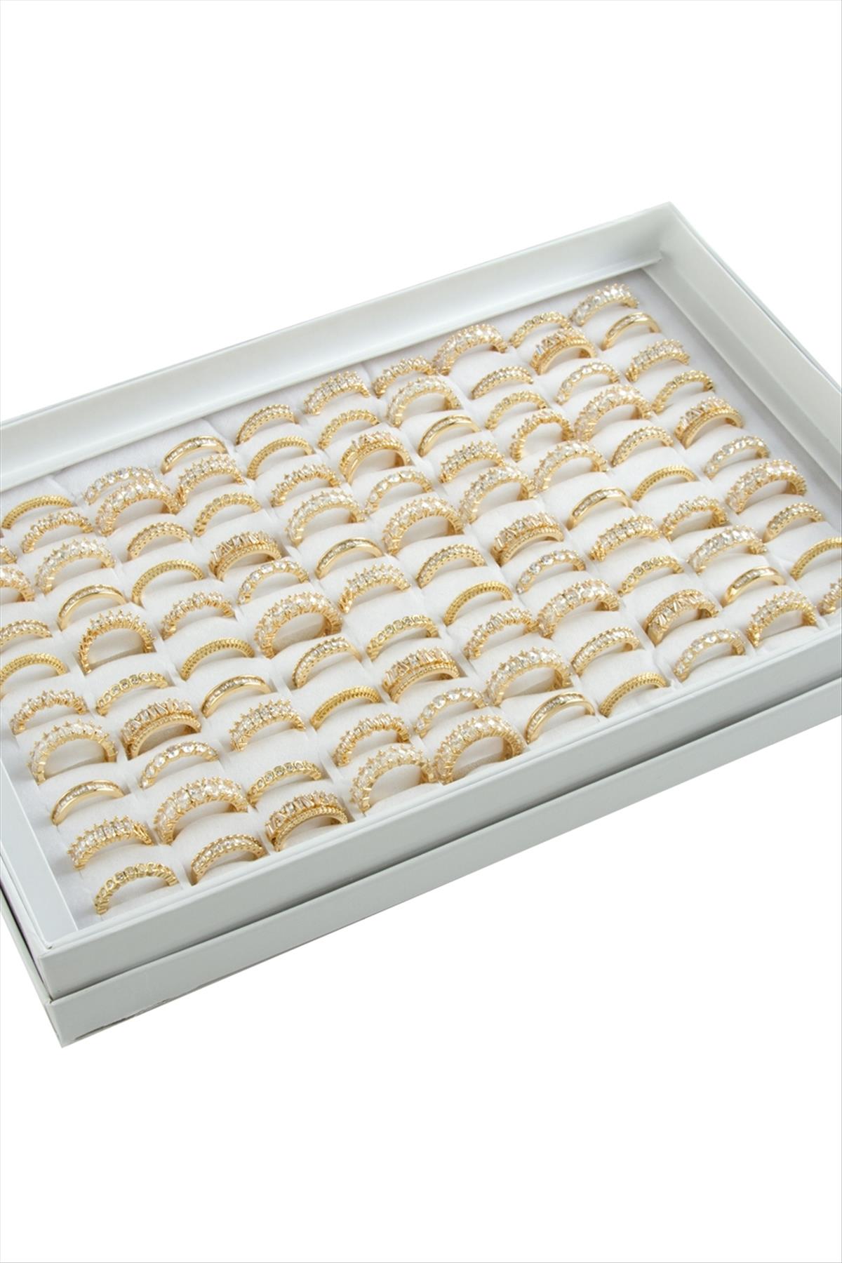 Karışık Lüks Baget Zirkon Taşlı Yüzük-Sarı
