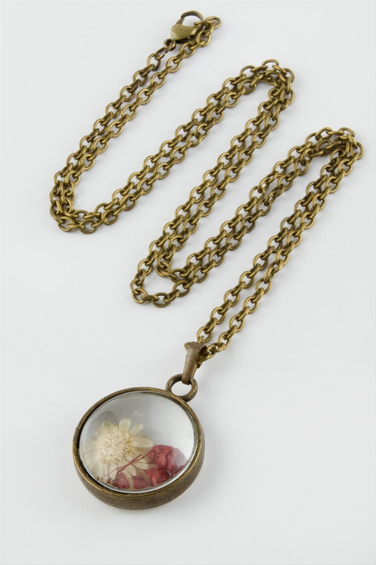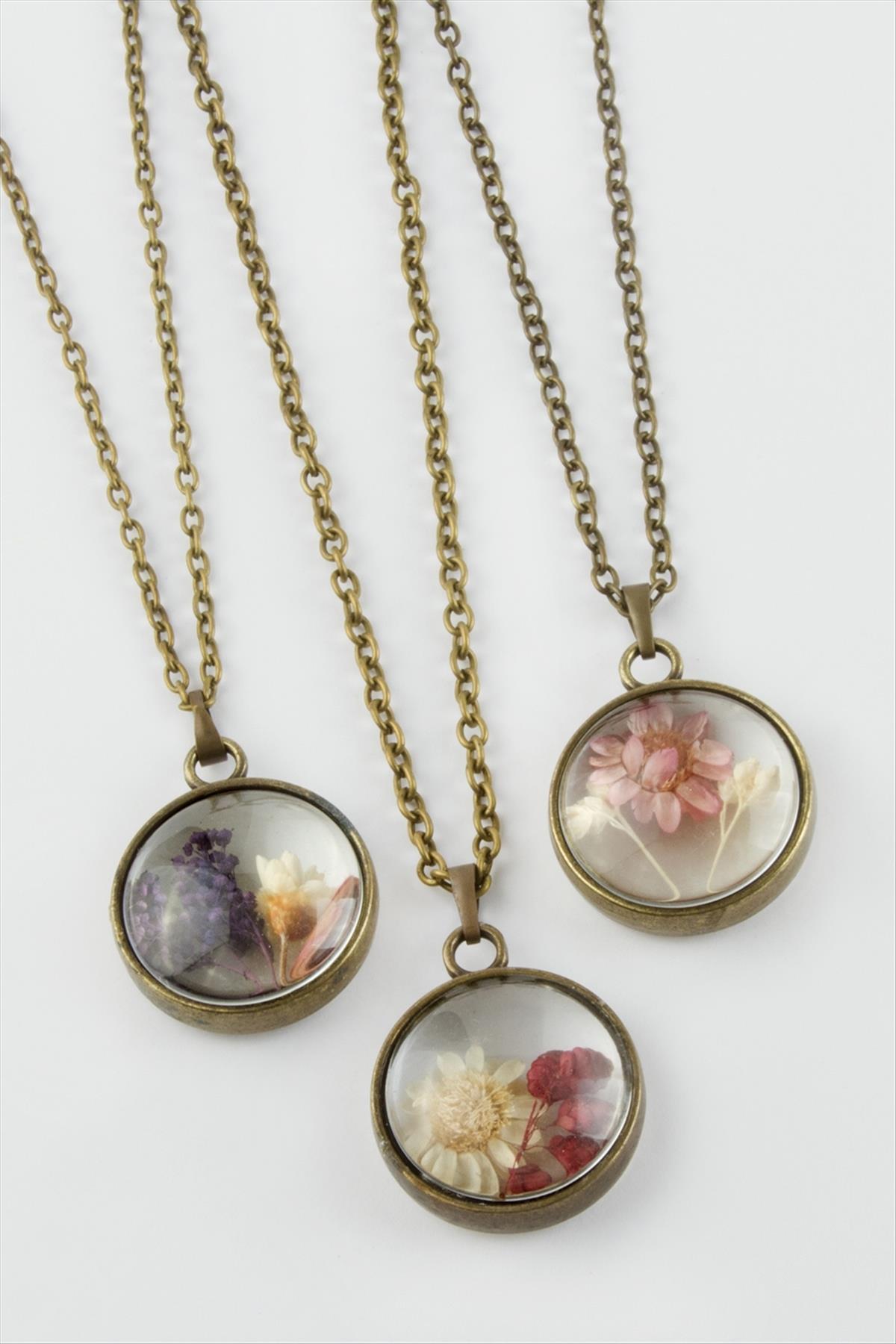 Karışık Renkli Çiçek Canlı Kolye-Antik